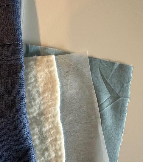 Once the pieces are stitched together , they are layered with the batting, interface and the backing.