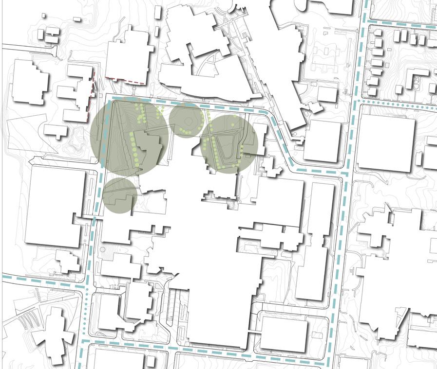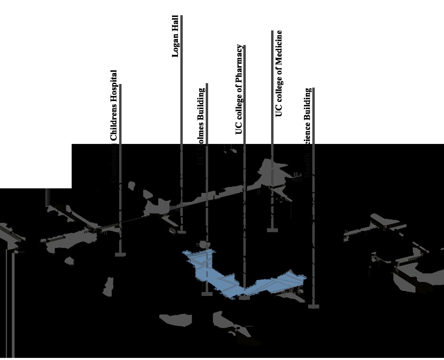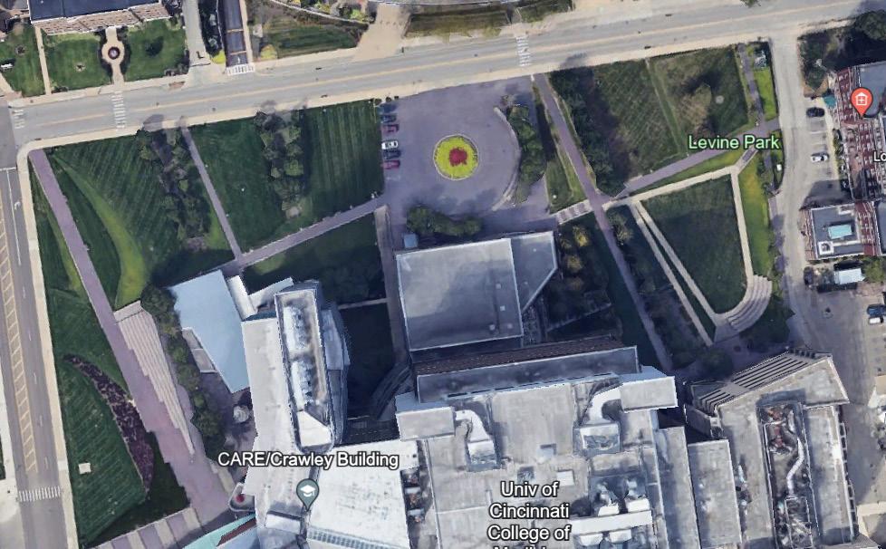 The site is a enclosed space with the Cincinnati children’s hospital, UC student health and Medical College overlooking the site inviting a diverse spectrum of users onto the site.