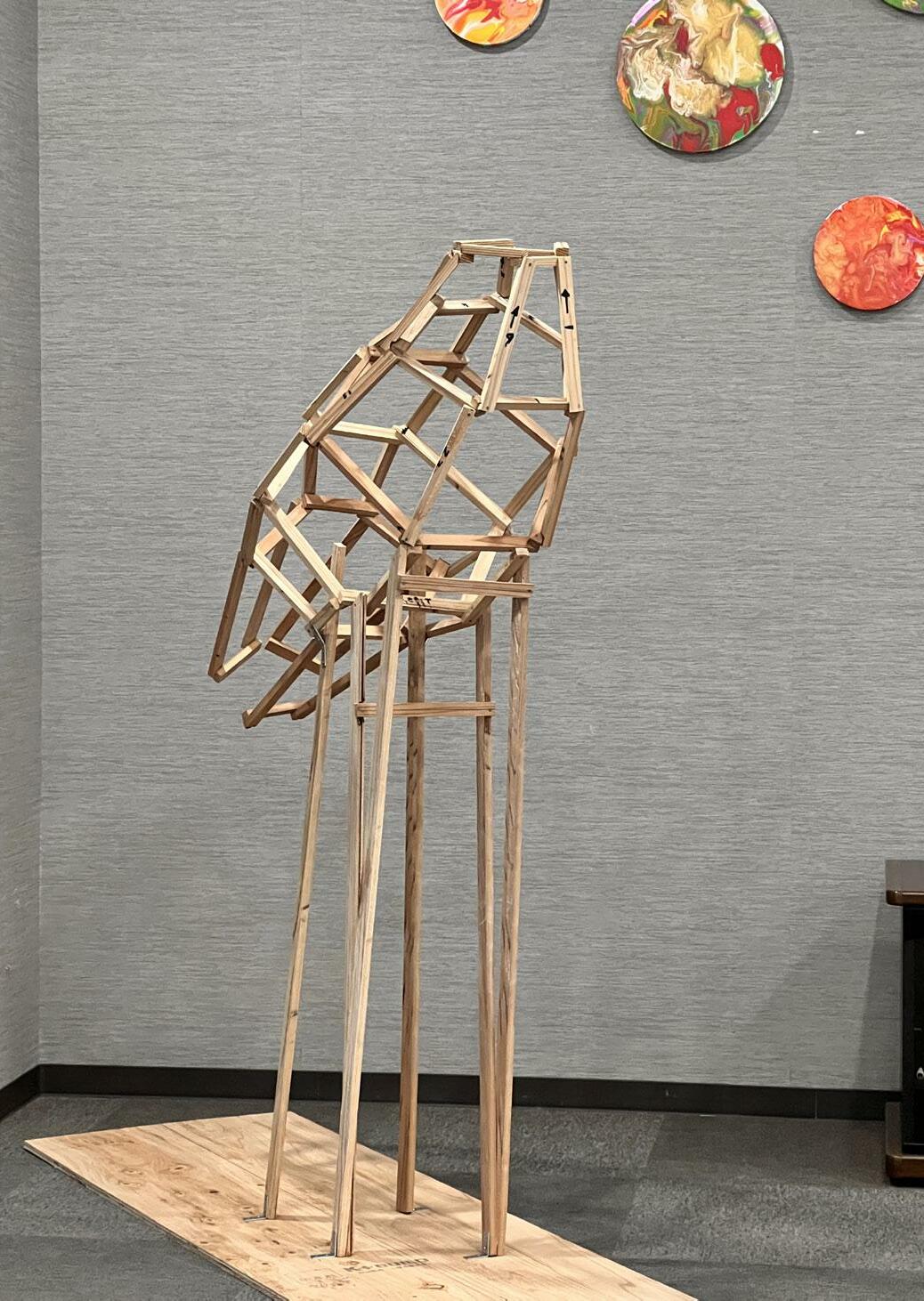 The combination of wood and metal creates a striking contrast with the sky as backdrop.