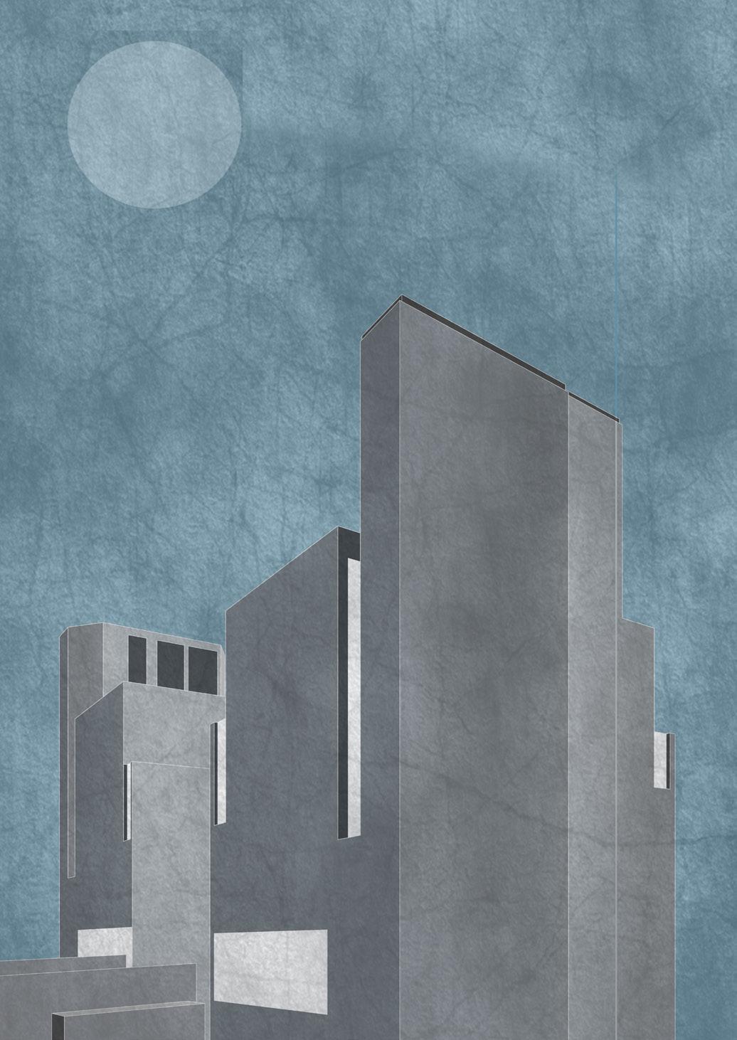 Two identical buildings without windows that create an immersive environment. Daylight pierces through various vertical & horizontal incisions in the blocks and exposes the ossified quality of bare concrete surfaces. The sublime atmosphere of the arresting internal spaces is cut by intriguing trajectories of concrete/steel staircases, which emerge to visually expand the entrance and compress themselves to finally disappear into suffused light.