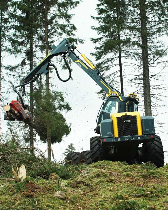 Den mycket kompakta måtten i kombination med en perfekt kvistning ner till 30mm gör att den klena gallringen kan utföras snabbt och effektivt med högsta kvalitet. I den grövre avverkningen ger de smarta SP-patenten LogHold och proportionellt vinklade matarhjul ett aggregat med imponerande stamhållning och högsta produktion.