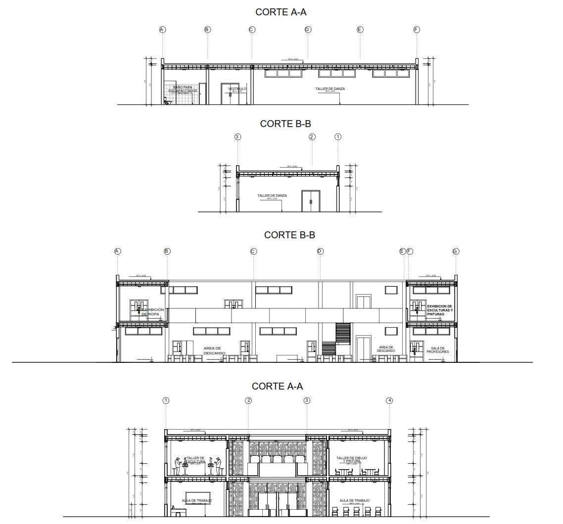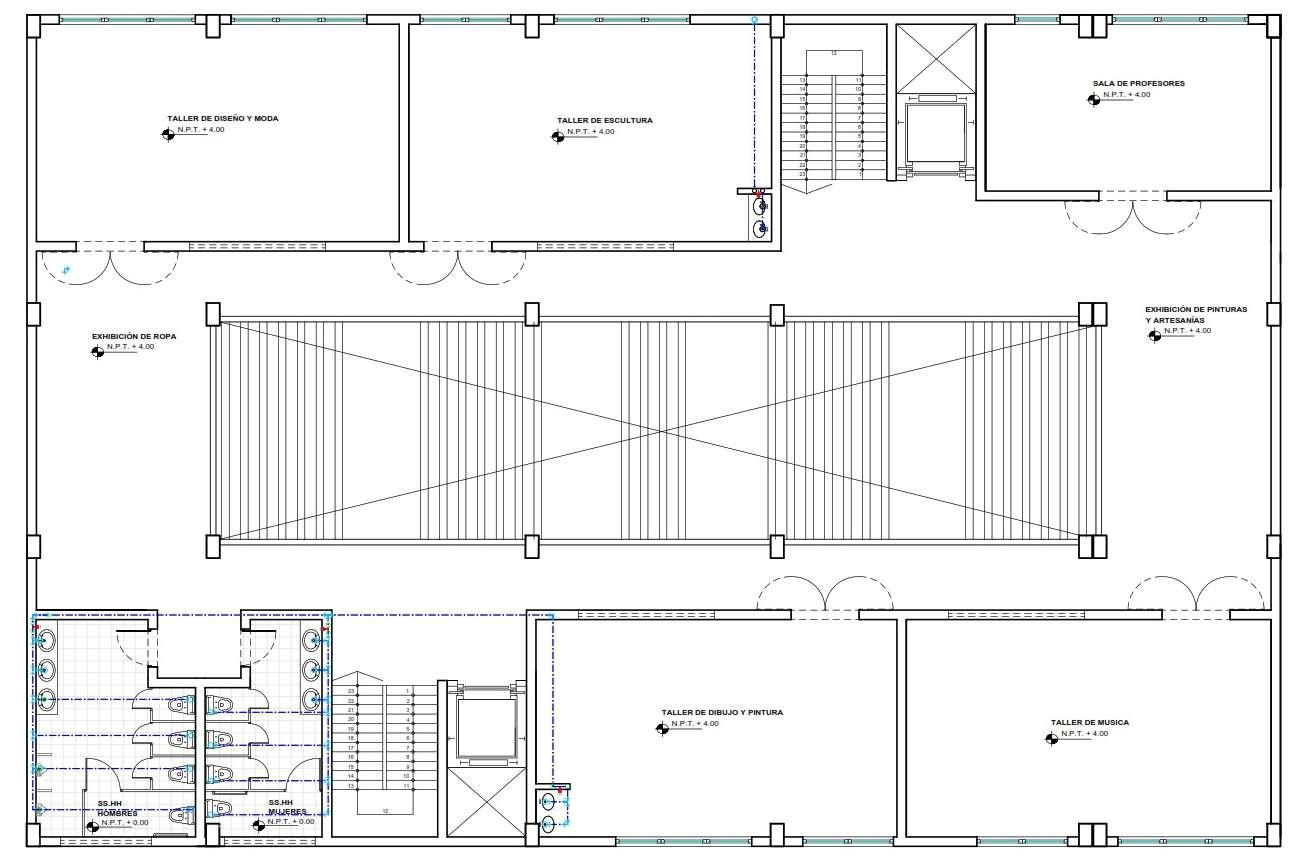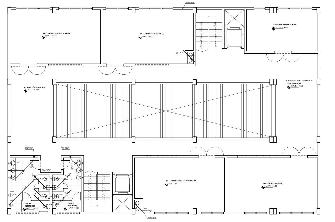 PLANO INSTALACIONES AGUA TALLERES PRIMER PISO PLANO INSTALACIONES AGUA TALLERES SEGUNDO PISO PLANO INSTALACIONES AGUA TALLER DANZA CORTES generales ELEVACIONES Generales ELEVACIONES TALLERES CORTES TALLERES Renders INDICE: 21 22 23 24 25 26 27 28
