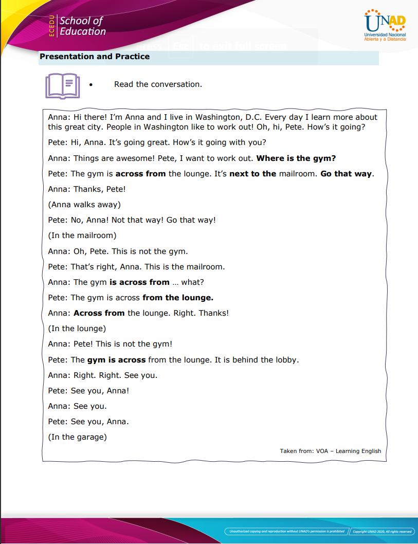 VOA Learning English. (2020, May 6). Lesson 6: Where Is the Gym? VOA.