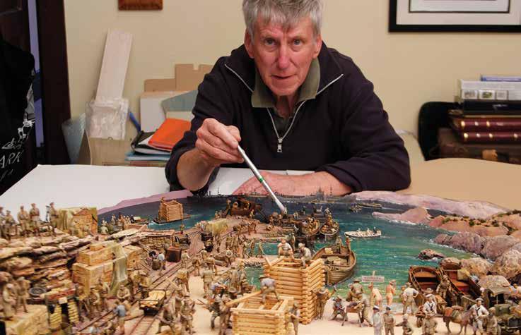 The scene that Geoff Barnes has re-created in his diorama is a view of the activities of the 1st RANBT while building the wharves in preparation for the Allied withdrawal.
