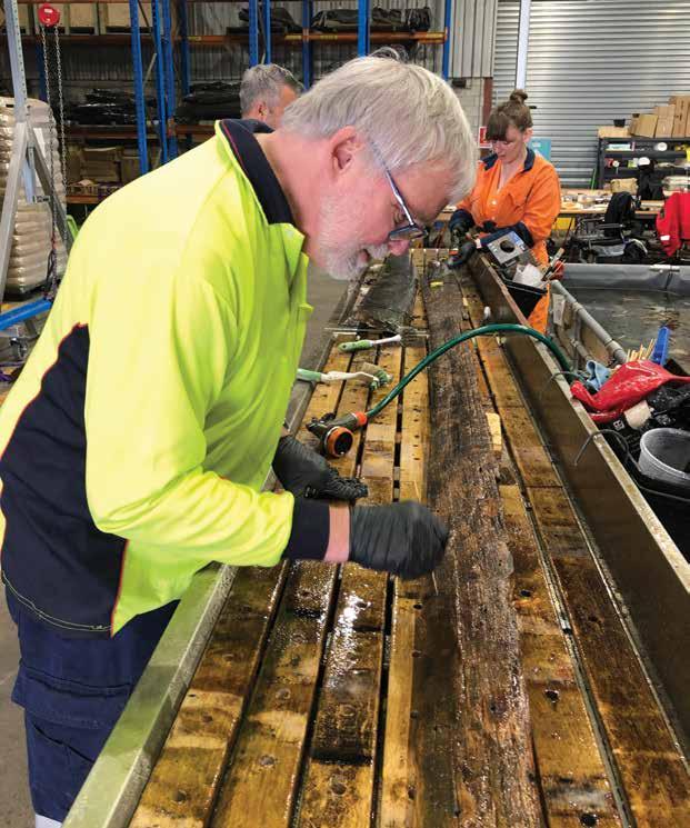 Day two began for me with the Australian National Maritime Museum’s Wooden Boat Symposium, which was comprised of a series of presentations and panel discussions on various maritime subjects, and was held in the School of Creative Arts and Media. A lead sailor from Duyfken, Mirjam Hilgeman, began the talks with an informative and entertaining account of the history of Duyfken ’s construction and the skills needed to take the 16th-century Dutch replica on a voyage from Sydney to Hobart. The museum’s Maritime Archaeology Manager, Kieran Hosty, presented on a vessel causing much wonder and excitement at the moment – the Barangaroo boat. With construction dated to the 1830s, this early colonial vessel is believed to be the oldestknown example in New South Wales of an Australianbuilt European-style timber boat.