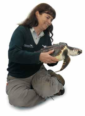 taronga Wildlife Hospital manager libby Hall with the young loggerhead turtle. photograph taronga Zoo