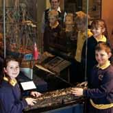 4 children from St mary’s primary School, rydalmere, learning more about James Cook and Endeavour from aNmm teacher-guide Zena Cohen. encountering a piece of Endeavour ballast in front are emma gallagher and Jake Donaldson, both 9. photographer a Frolows/aNmm