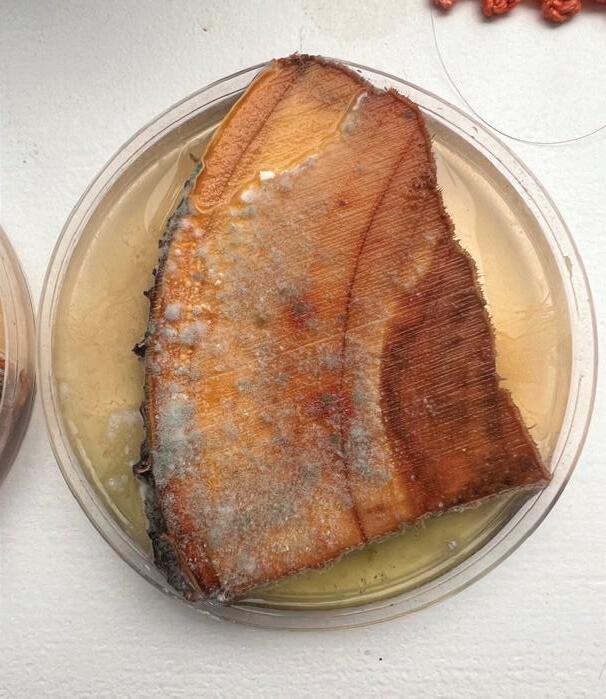 Growing fungi on wood helps the carbon sequestration process and allows the wood to have a more organic demise. This process also allows to create food opurtunities for smaller species. The idea of creating an ecosystem is acheived through this process.