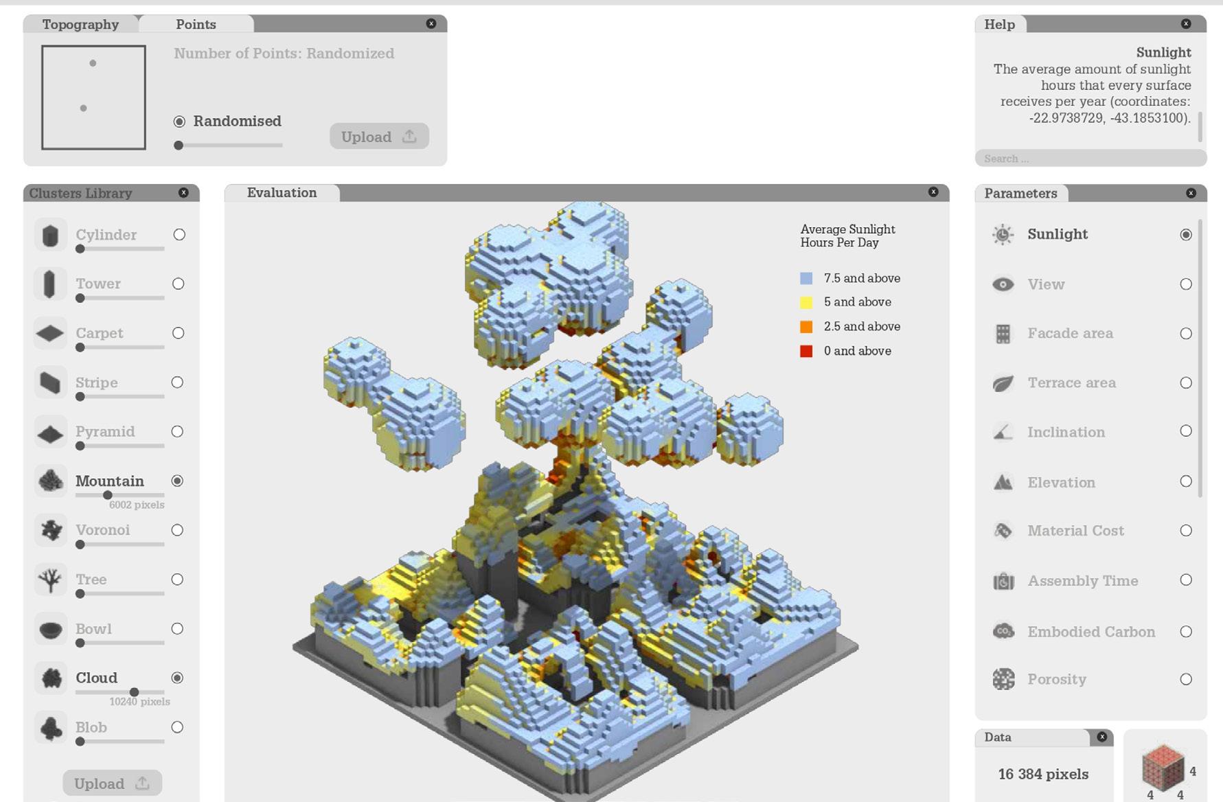 From a structural perspective, H-shaped loadbearing walls are constructed by unskilled workers using local rammed earth. Slats are mounted onto reinforced fiber frames provide ventilation. This assembly ensures maximum climate comfort with phase changing material, aerogel, and trombe wall membrane aiding regulating temperatures day and night.