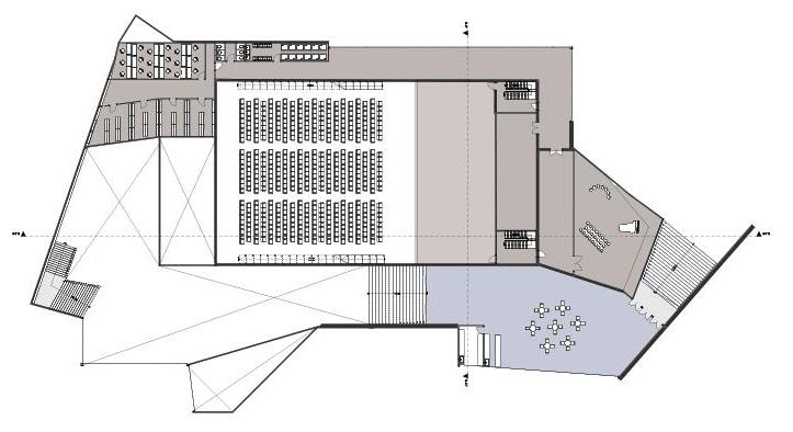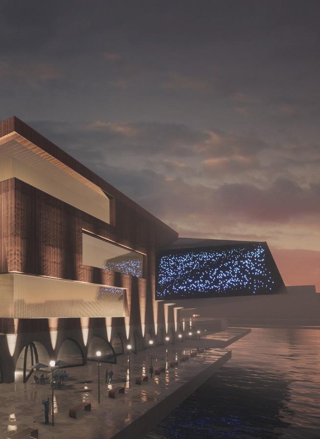 The elevated upper boundaries of the buildings amplify the enclosure of the square between them, effectively framing the redefined extraverted space. The design establishes a dynamic interplay of levels, fostering diverse forms and degrees of inter-