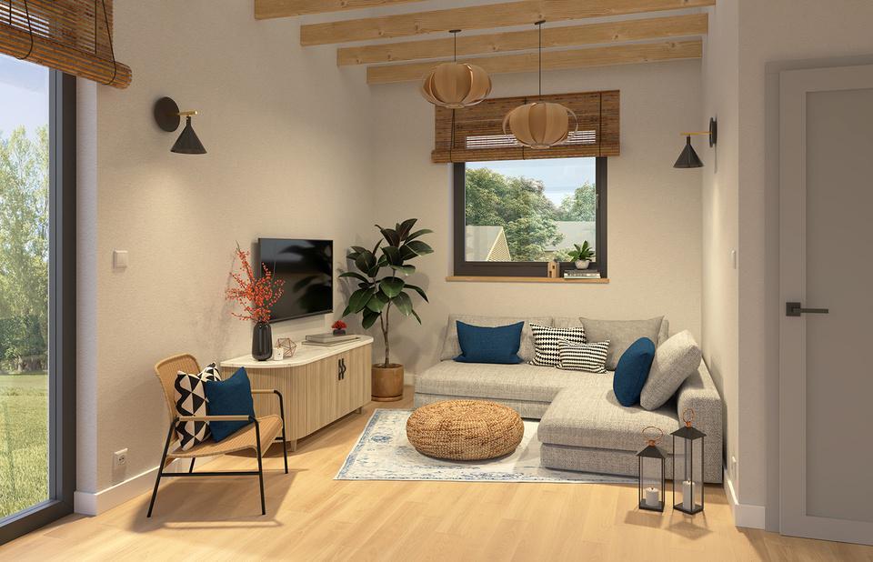 P r o j e k t s a l o n u o r a z z a m k n i ę t e j k u c h n i w d o m k u n a z g ł o s z e n i e ( 7 0 m 2 )
