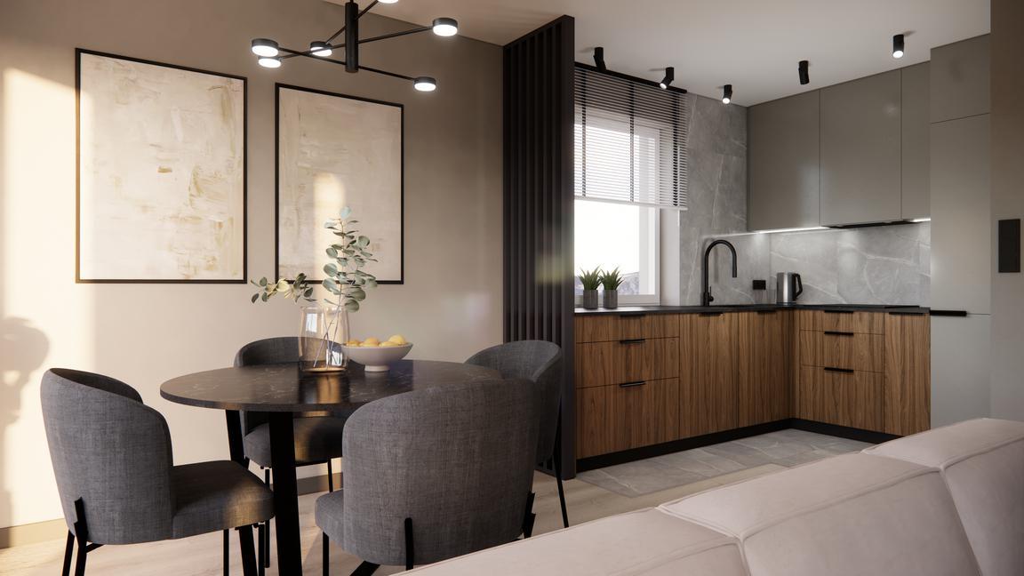 P r o j e k t s a l o n u z a n e k s e m k u c h e n n y m i p r z e d p o k o j e m