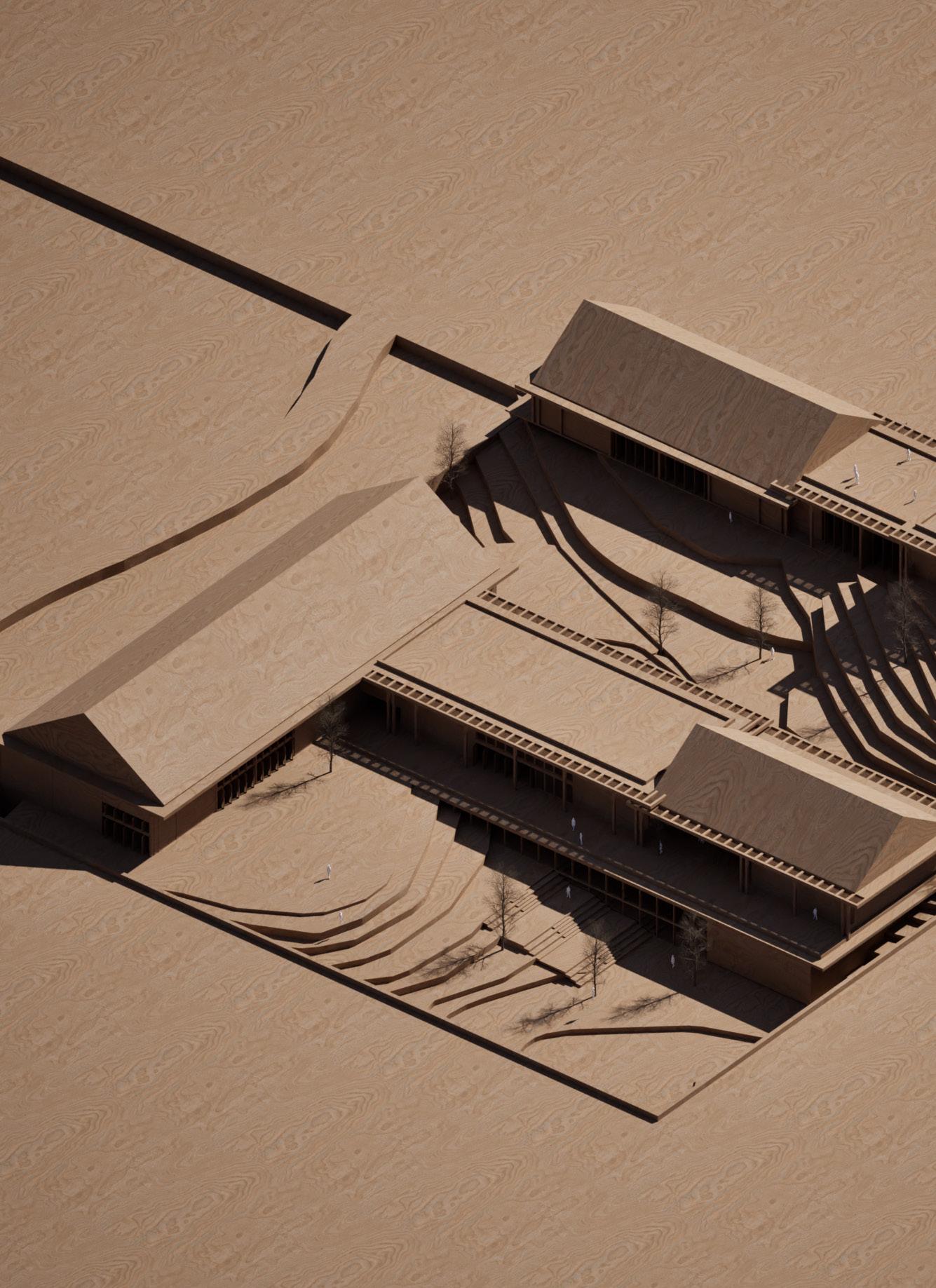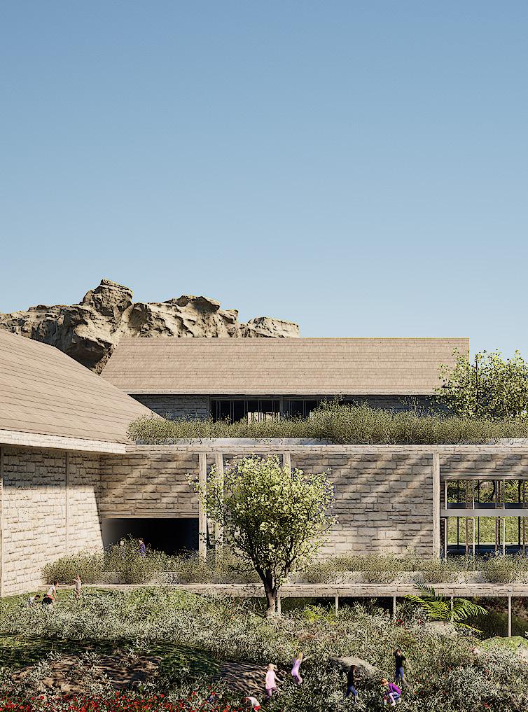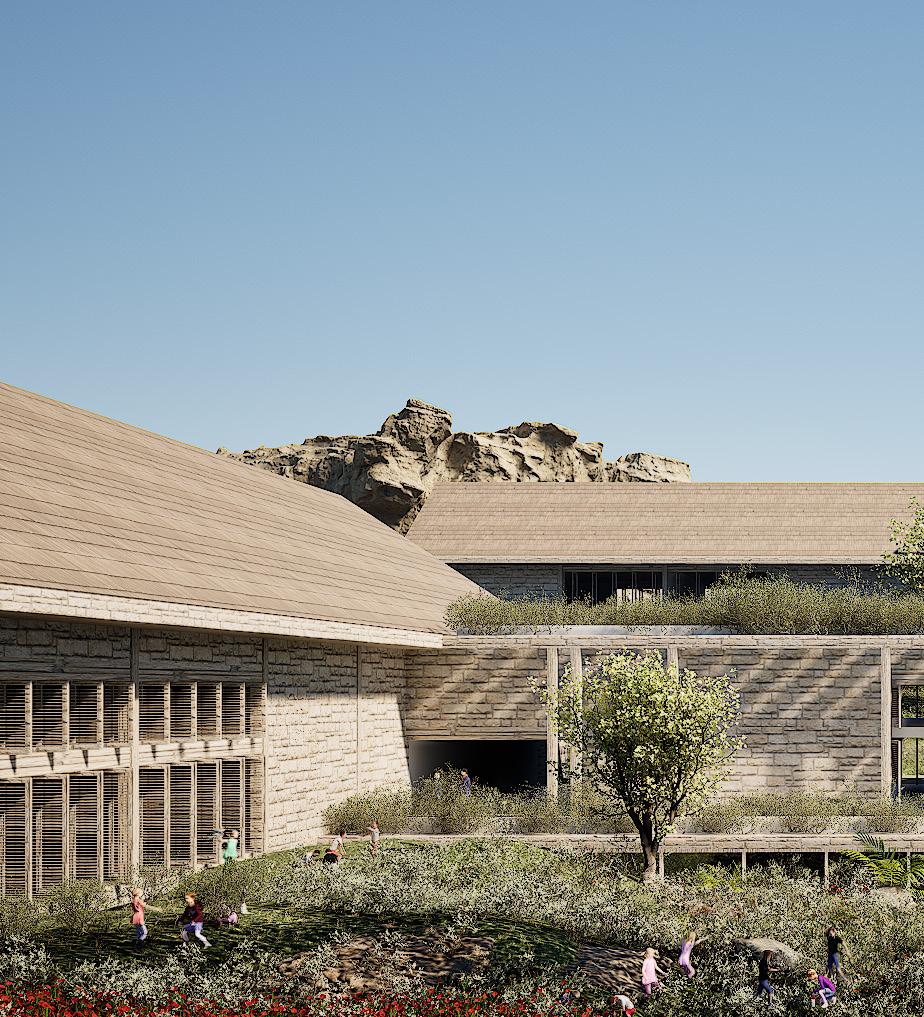Les salles de classes, polyvalentes et ouvertes, offrent une expérience éducative sans frontières. Les panneaux pivotants permettent aux étudiants d’apprendre à l’intérieur comme à l’extérieur, en fonction de leurs besoins et de leurs envies. La grande bibliothèque, située dans un espace négatif, crée une atmosphère enveloppante pour favoriser la concentration. Les jardins et les cuisines, symboles d’ouverture et de partage, sont des lieux d’apprentissage des cultures. Les salles d’art, ouvertes sur la mer infinie, invitent à la créativité et à la contemplation. Enfin, le centre culturel est un pôle pour la communauté, où les grands et les petits se retrouvent pour célébrer la diversité et la vie communautaire.