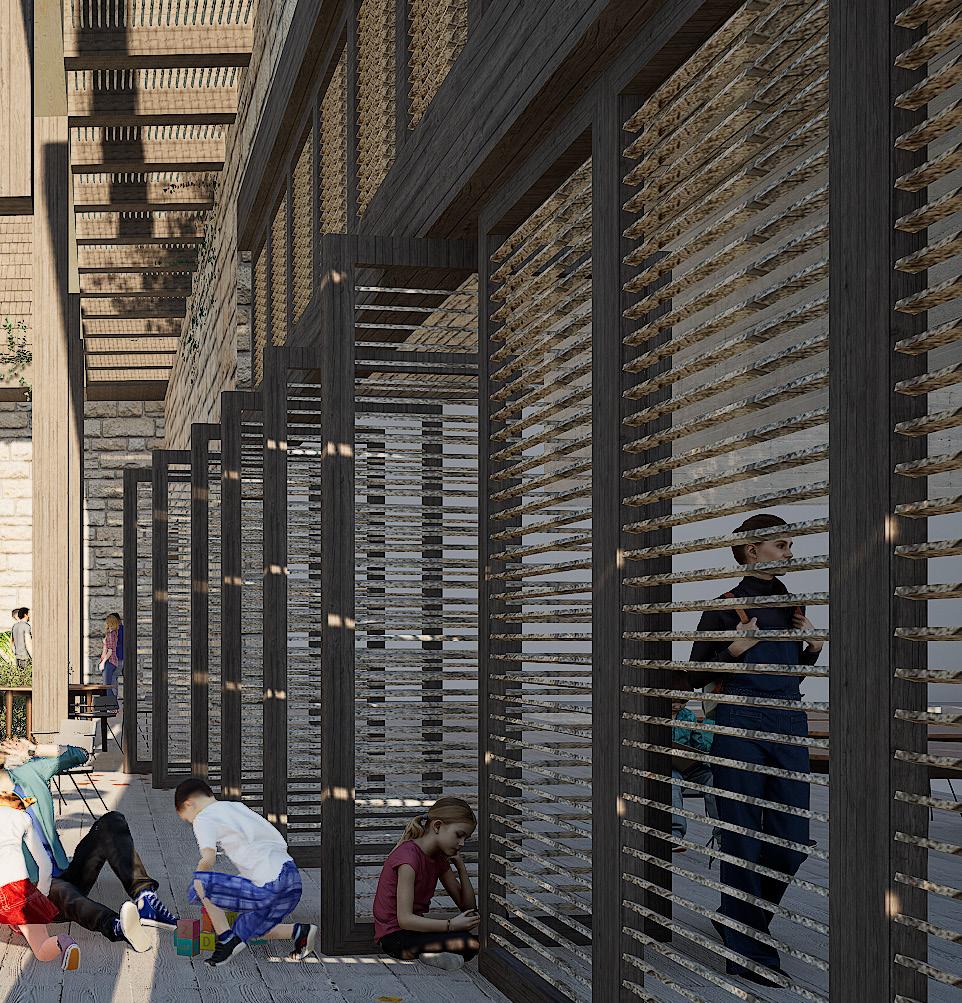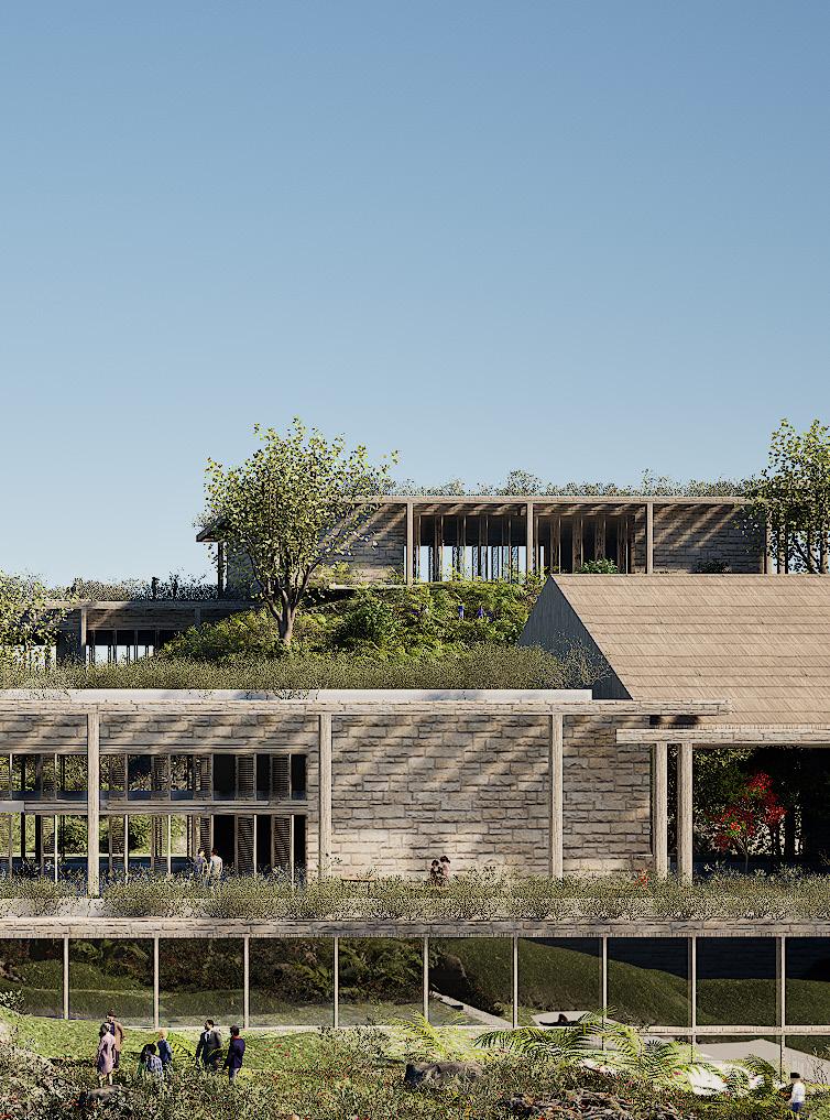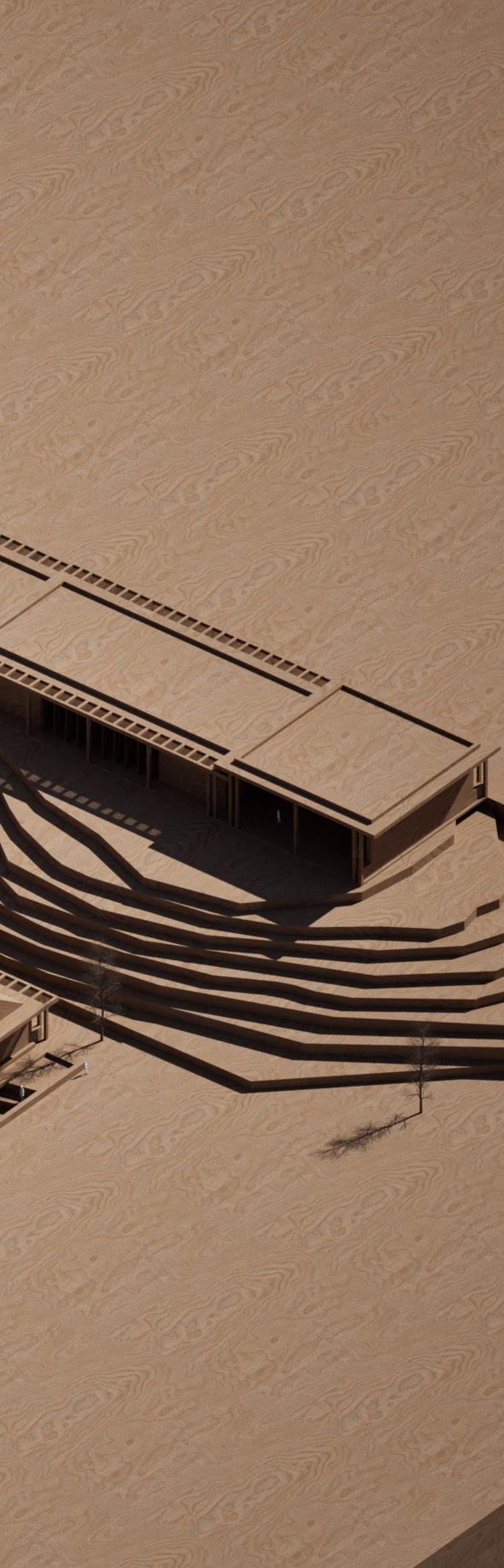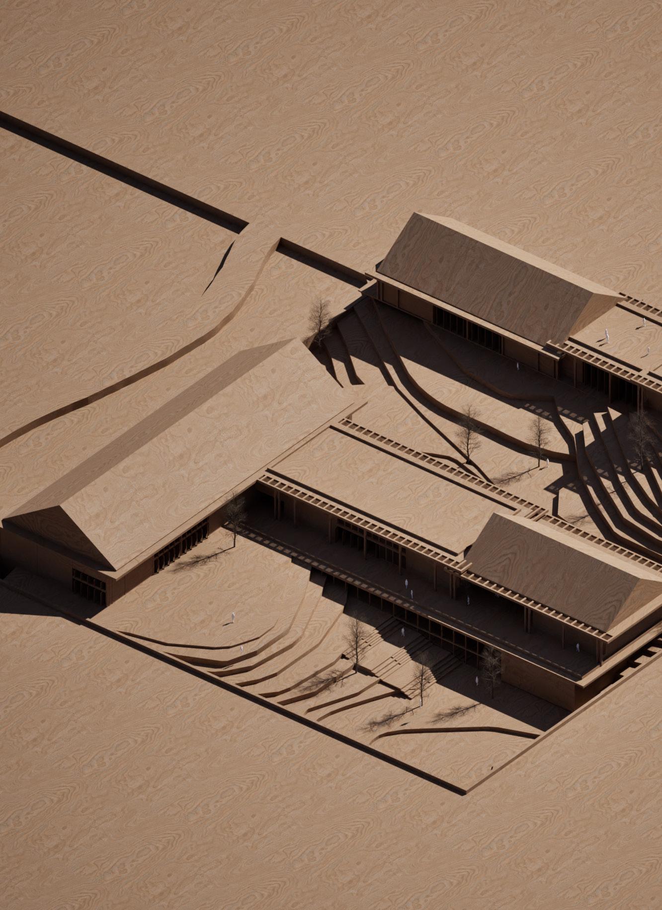 Les salles de classes, polyvalentes et ouvertes, offrent une expérience éducative sans frontières. Les panneaux pivotants permettent aux étudiants d’apprendre à l’intérieur comme à l’extérieur, en fonction de leurs besoins et de leurs envies. La grande bibliothèque, située dans un espace négatif, crée une atmosphère enveloppante pour favoriser la concentration. Les jardins et les cuisines, symboles d’ouverture et de partage, sont des lieux d’apprentissage des cultures. Les salles d’art, ouvertes sur la mer infinie, invitent à la créativité et à la contemplation. Enfin, le centre culturel est un pôle pour la communauté, où les grands et les petits se retrouvent pour célébrer la diversité et la vie communautaire.