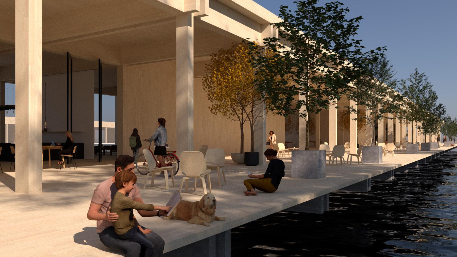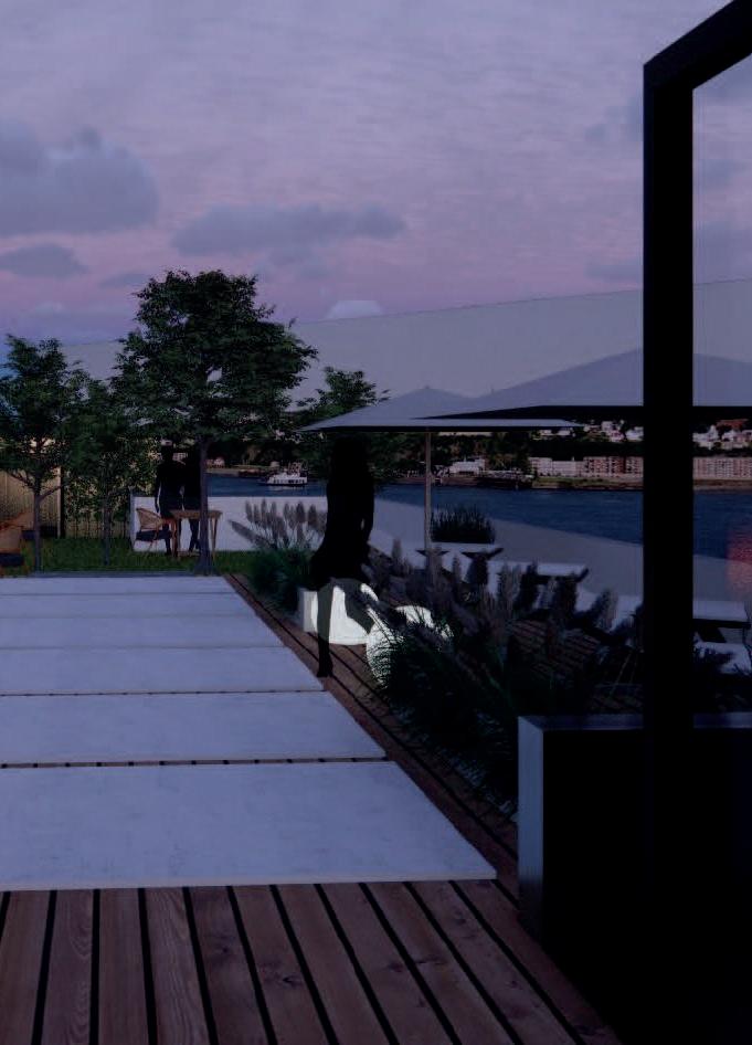 Ensuite, la rivière qui était auparavant cachée et représentait une complication sur le site est maintenant utilisée comme un accessoire et un aspect attrayant du projet. Non seulement l’atmosphère naturelle de ce côté du bâtiment est utilisé à profit, mais l’enjeu de débordement de la rivière est maintenant contrôlé par un bassin de rétention d’eau sous le bâtiment. Ce projet soulève des questions sur la construction respectueuse de l’environnement ainsi que sur l’introduction de bâtiments multifonctionnels dans une ville.