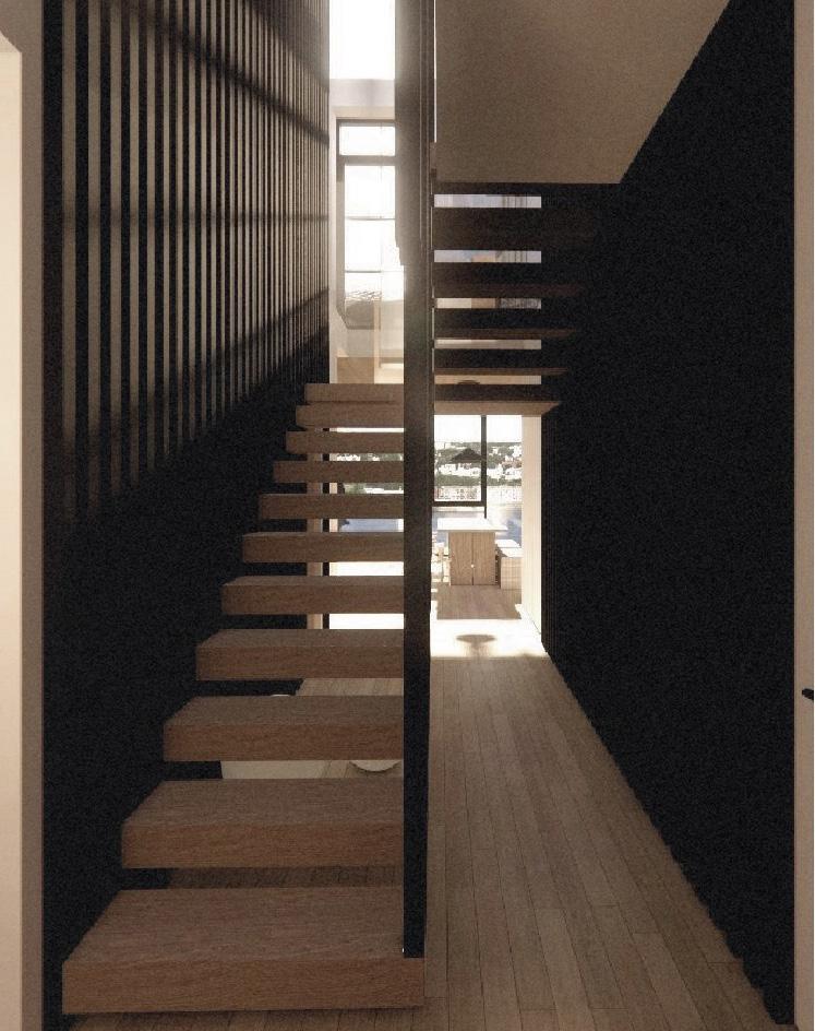 Bibliothèque sur 2 étages en espace négatif | Sentiment de refuge et protection contre le vent