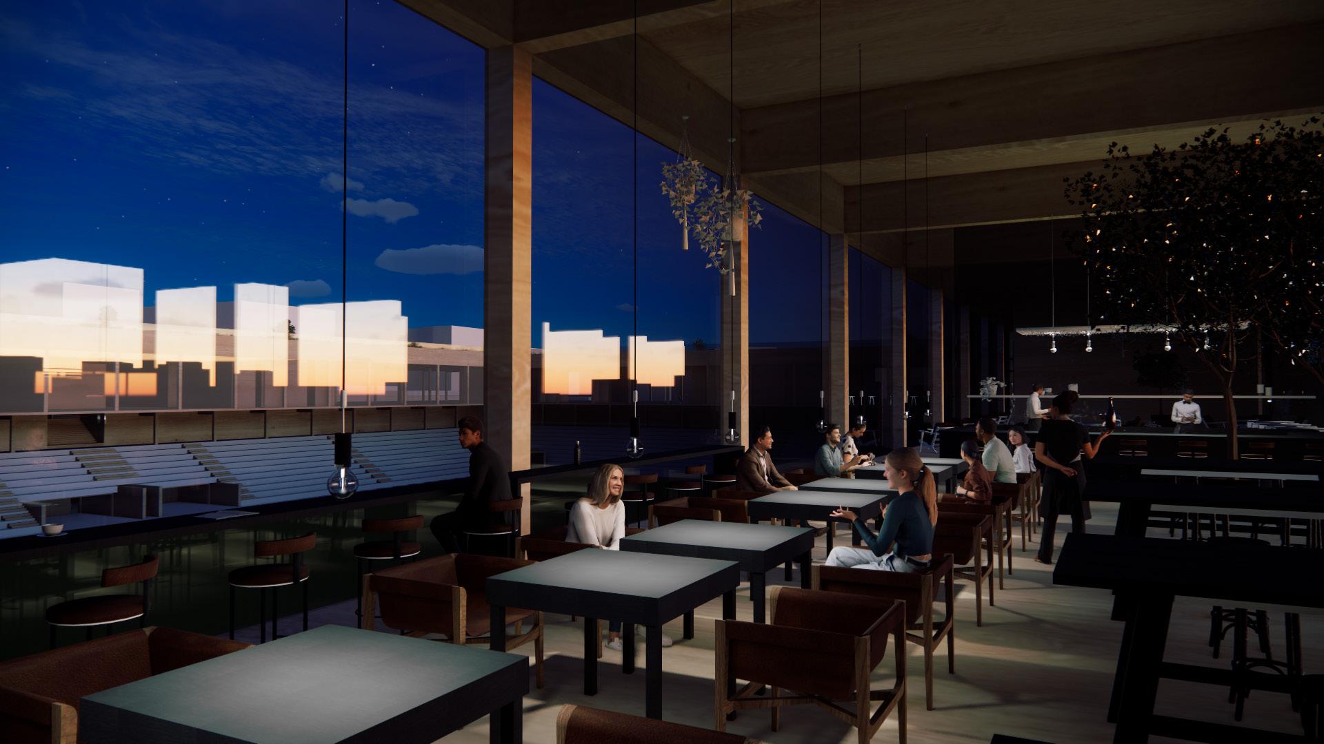 La construction souterraine du stade crée un bâtiment moins intimidant qu’un stade moyen pour s’intégrer au quartier résidentiel environnant. La perméabilité de la structure en bois permet une ventilation naturelle dans tout le bâtiment et confère une ambiance dynamique à un plan par ailleurs orthogonal. En voyant à travers le bâtiment, les visiteurs ont un aperçu de l’atmosphère du match de football en cours et sont immédiatement encouragés à participer aux différentes fonctions proposées. La terrasse sur le toit, agissant comme la cinquième façade, ajoute des espaces verts à la zone urbaine dense, contrecarre les îlots de chaleur et propose un espace de détente pour les visiteurs. C’est aussi là qu’un bassin de collecte d’eau est installé pour arroser la verdure et utilisé comme eaux grises dans les salles de bain.