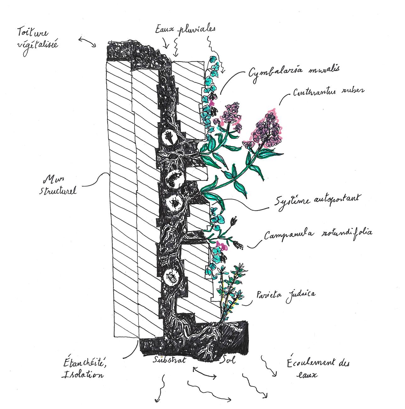 Fig. 57 Chartier Dalix. (no date) The Biodiversity Wall System. Available at: https://www.chartier-dalix.com/en/resources/hosting-life-research(Accessed: 09 January 2024).