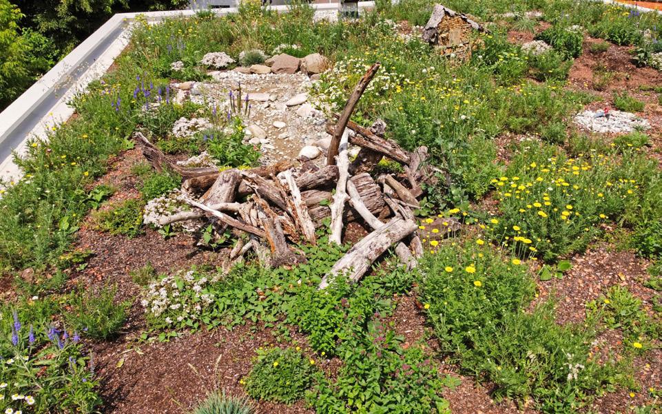 Fig. 44 Hohenschlaeger. (no date) “Deadwood” should really be called “biotope wood”, as it is used as a habitat by moss, lichen, beetles and flies. Available at: https://zinco-greenroof.co.uk/ green-roofs-preserve-biodiversity#:~:text=That%27s%20why%20 biodiverse%20green%20roofs,building%20development%20 and%20sealed%20ground.(Accessed: 07 January 2024).