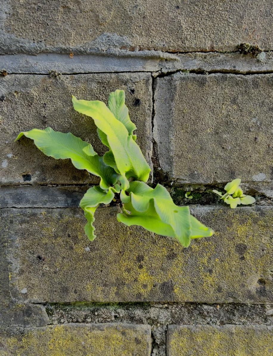 Fig. 31 Wilks, A. (2023) Harts-Tounge Fern [Asplenium Scolopendrium] Growing in Gap of Weathered and Eroding Mortar Between Bricks. Oxford.