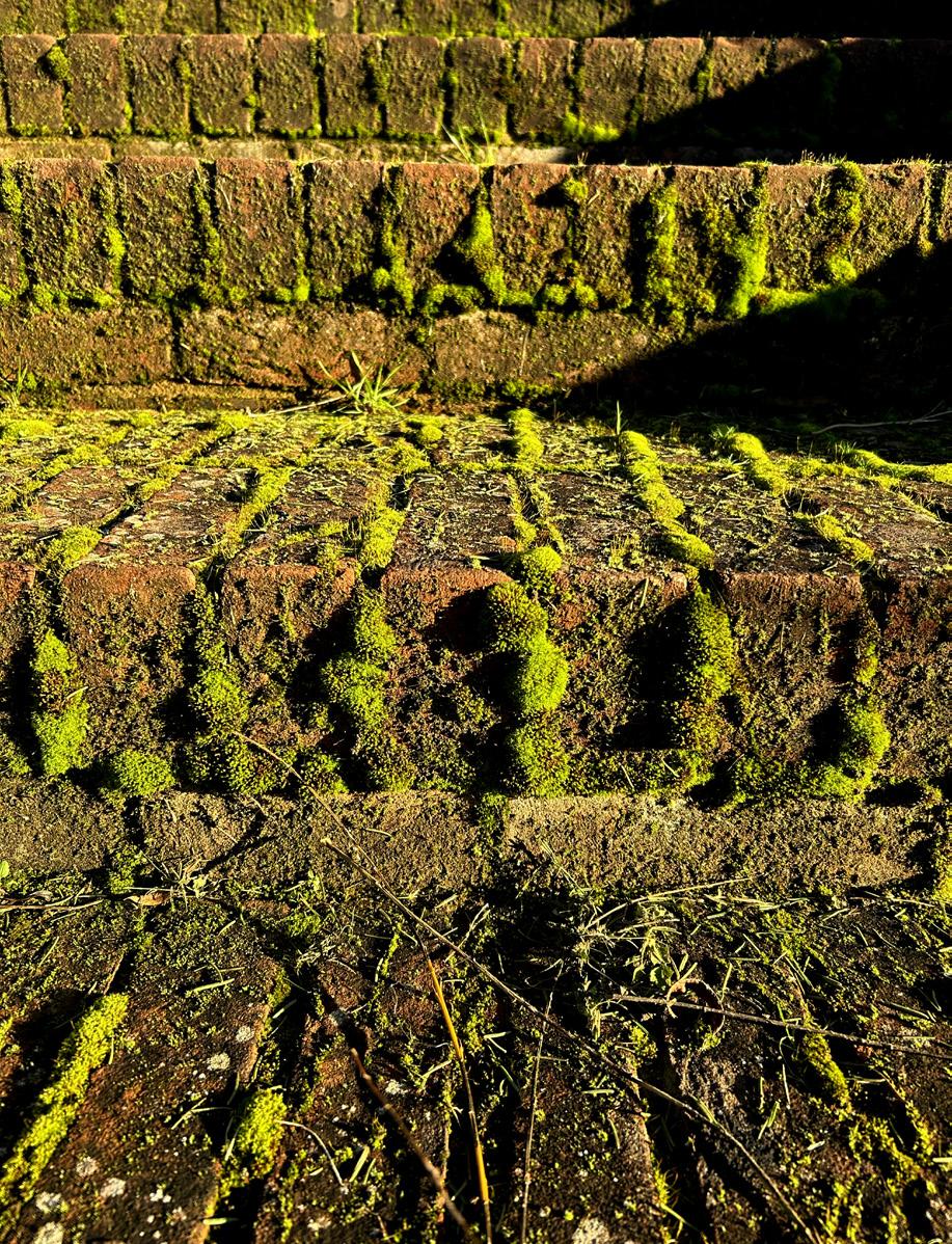 Fig. 37 Wilks, A. (2024) Wall Screw Moss [Tortula Muralis] Growing in Place of Eroded Motrar Between Weathered Brick Steps Oxford.