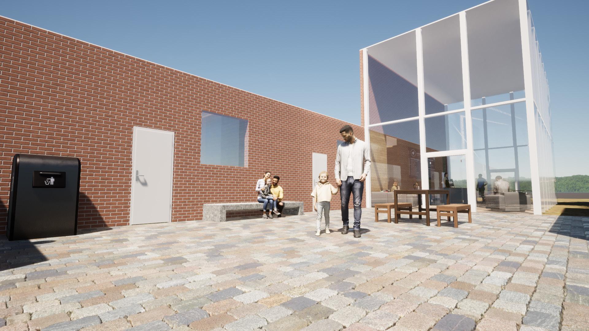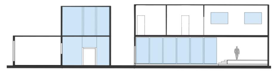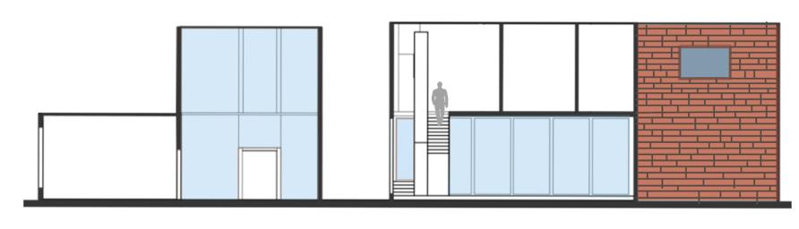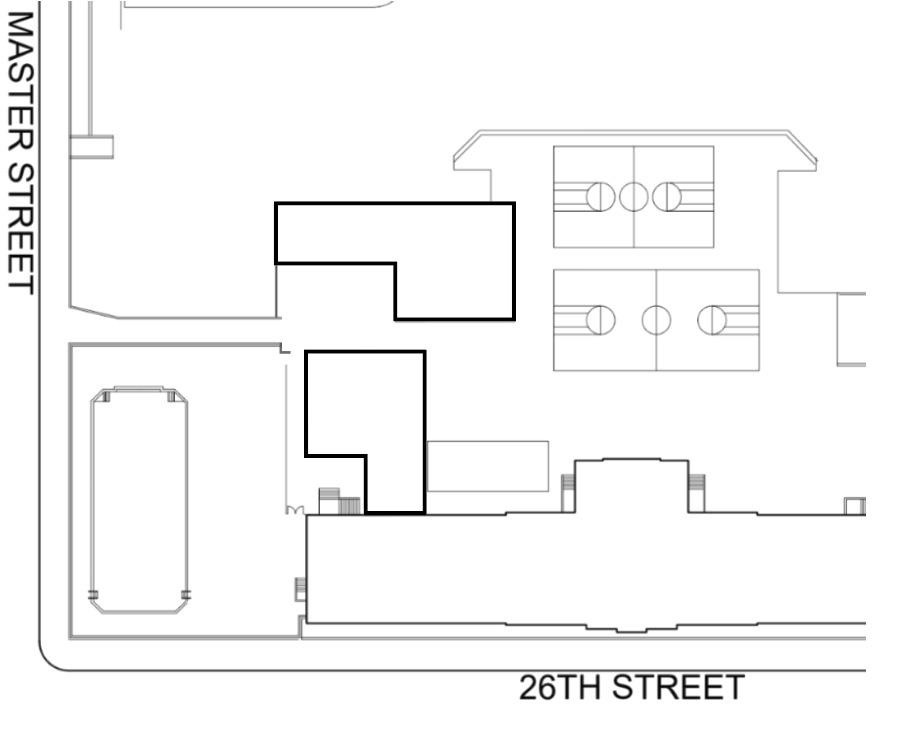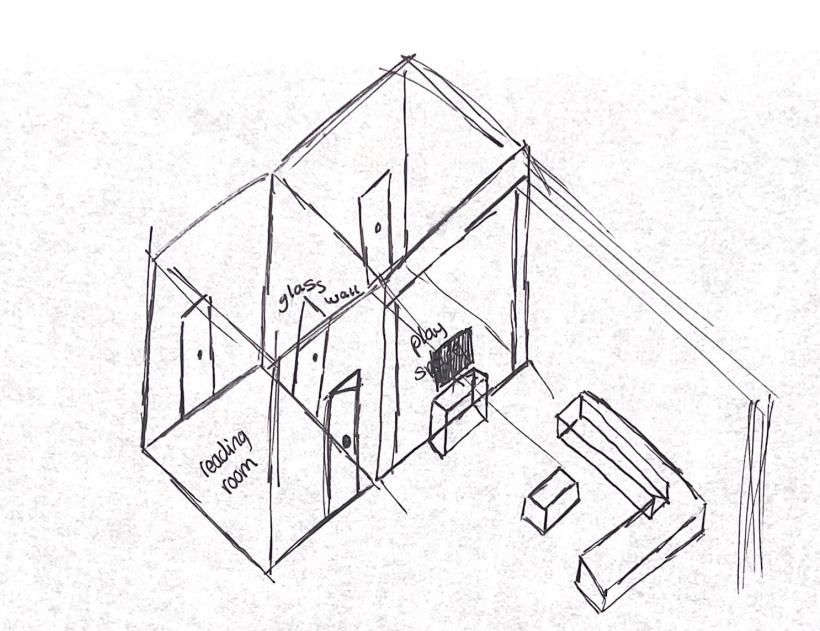 When coming off Master Street, the path directs people towards the basketball courts. The proposed design consists of two buildings on each side of the original path. The focal point is the double height gathering space that intervenes the walkway allowing people to walk through it or continue walking past it. The windows allow natural light and make the spaces feel more welcoming. Their is a courtyard created between my buildings that allow for more interaction between community members.