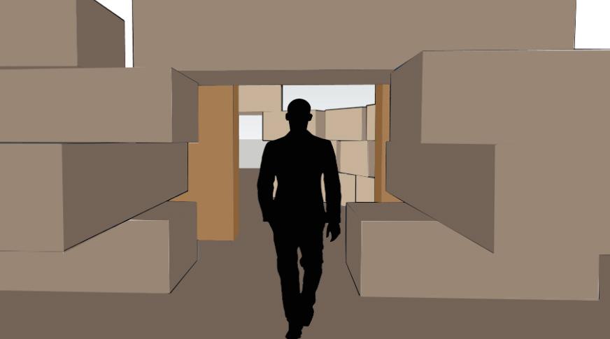 Given a site and jenga blocks, the project explored making spaces for people to walk through the site in a way that reflected a book we read. This was based off of the book Tasting Freedom which showed Octavious Catto being a leader for the black community when voting had just became legal for them. When first walking through the jenga blocks a person feels lost and trapped. After walking through into the open space they look up to the stacked blocks and now feel more open and free.