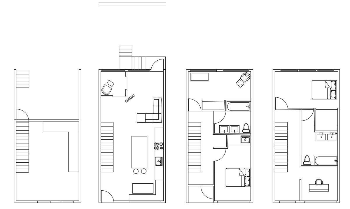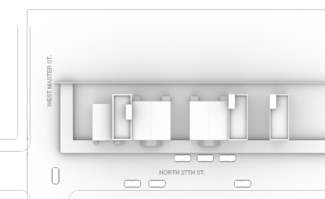 Given five lots on North 27th Street in Sharswood, Philadelphia, the objective was to create a floorplan that meets the clients needs. Then recreating that house four times to create four rohomes and design an exterior space in the empty lot between the homes. The challenge was to create new architecture while conforming to the styles already in the neighborhood. This was designed for a multigeneratinal family that values the importance of connecting with each other and their neighbors.