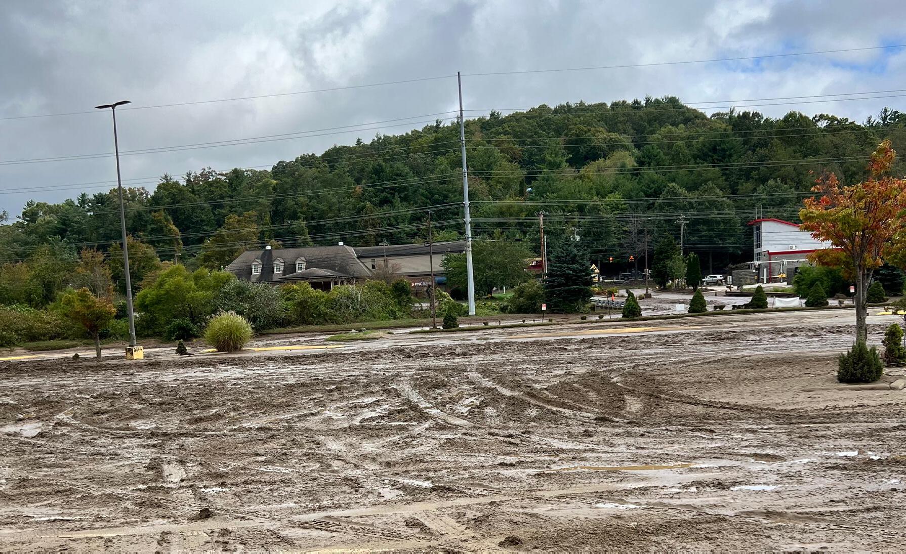 A: Boone Mall parking lot filled with mud after the flooding went down.