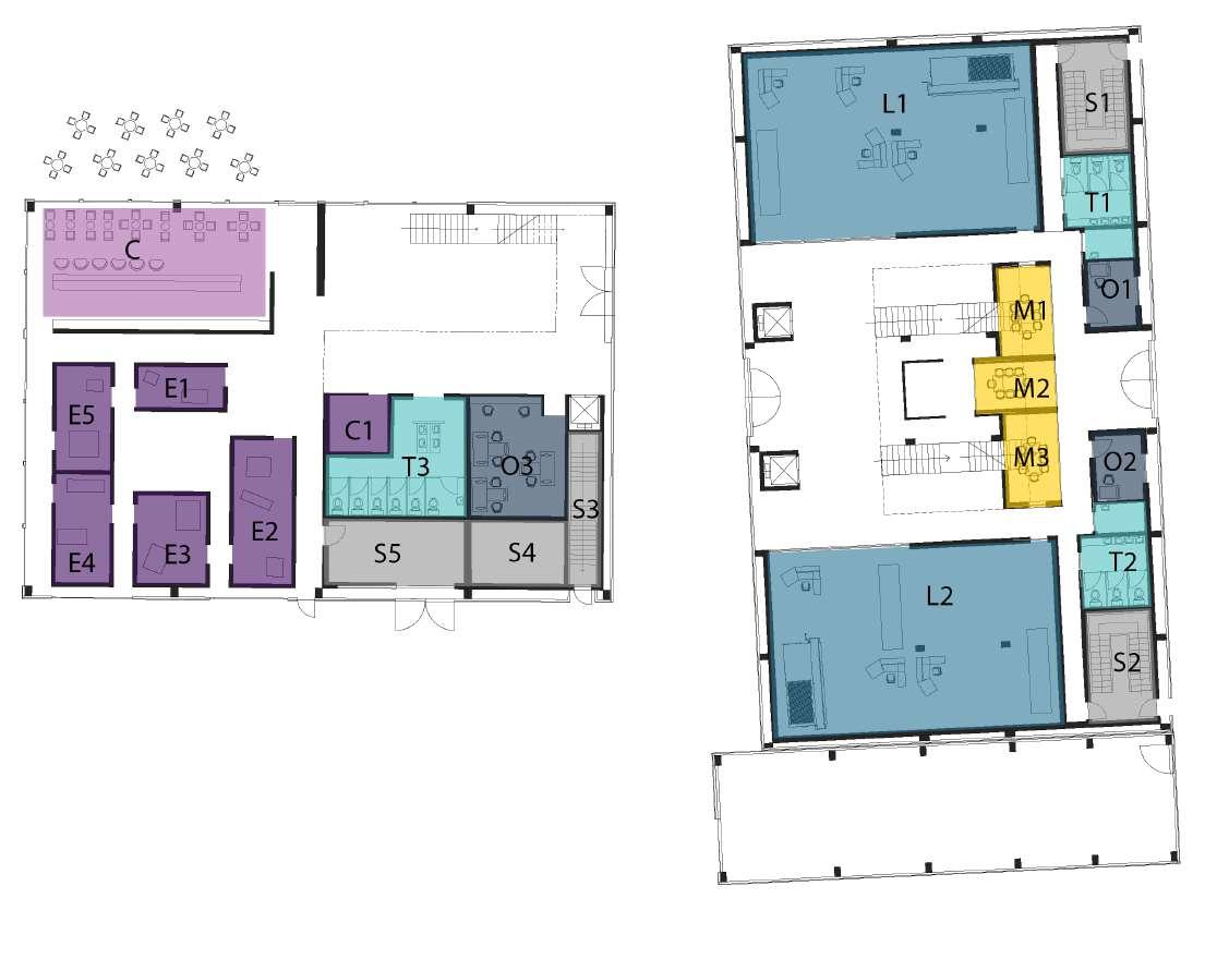 The refurbishment strategies are applied to the singular cells designed in the upper floors. In terms of spatial comfortability the multiple cells are combined to provide the larger space.