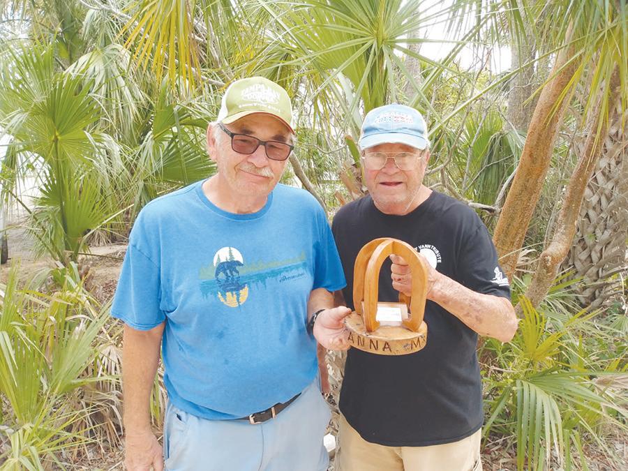 Tom Farrington, left, teamed up with Bob Heiger to win the final 23-15 over Bob Mason and John Poccynek and ended up in the winner's circle on Feb. 19 at Anna Maria Horseshoes. Three teams ended up battling for the top spot on Feb. 21 with the bye going to Tim Sofran and Bob Hawks while Farrington and Tom Anderson moved on after a 21-9 win over Mason. Sofran and Hawks won the final 21-8 to win the day’s championship.