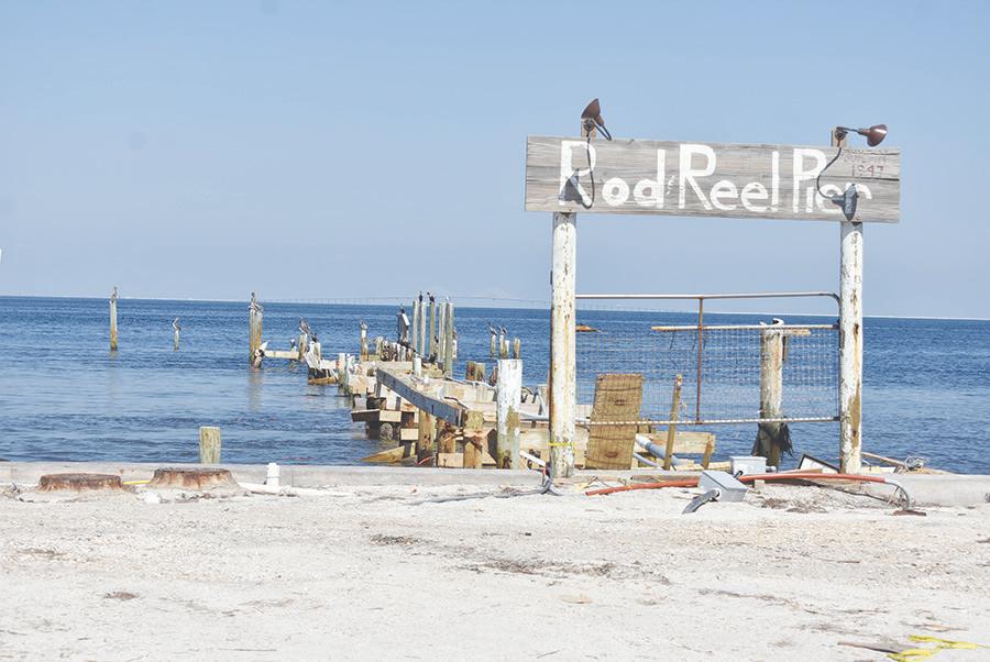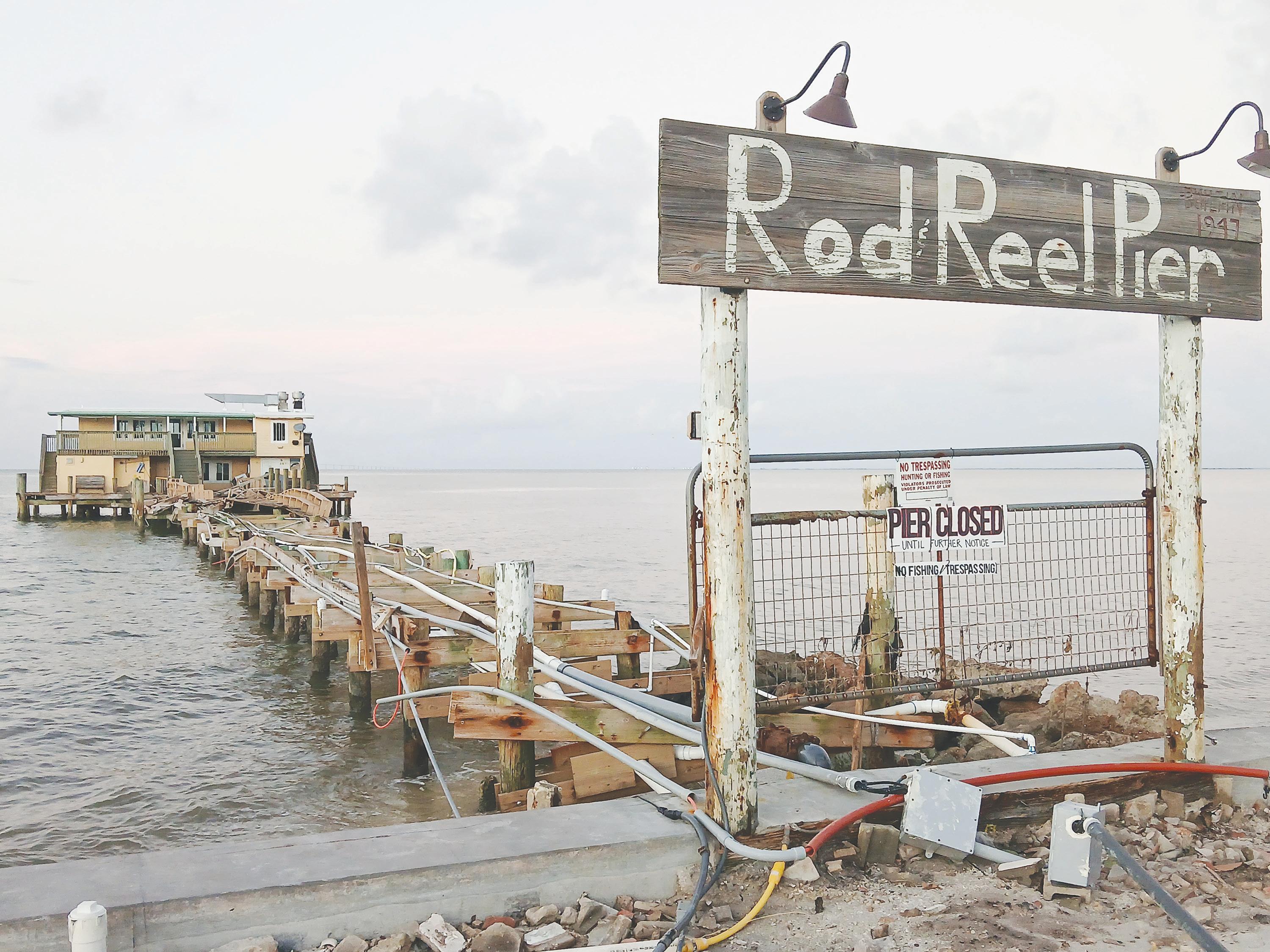 On Sept. 26, Helene inflicted significant damage on the privately-owned, wooden Rod & Reel Pier and the two-story restaurant and bar building at the end of the pier. Helene stripped the pier of its wooden planks and wreaked havoc on utility lines that ran from the shoreline to the pier building, also damaged in the storm. The old wooden pier was badly damaged but remained standing.