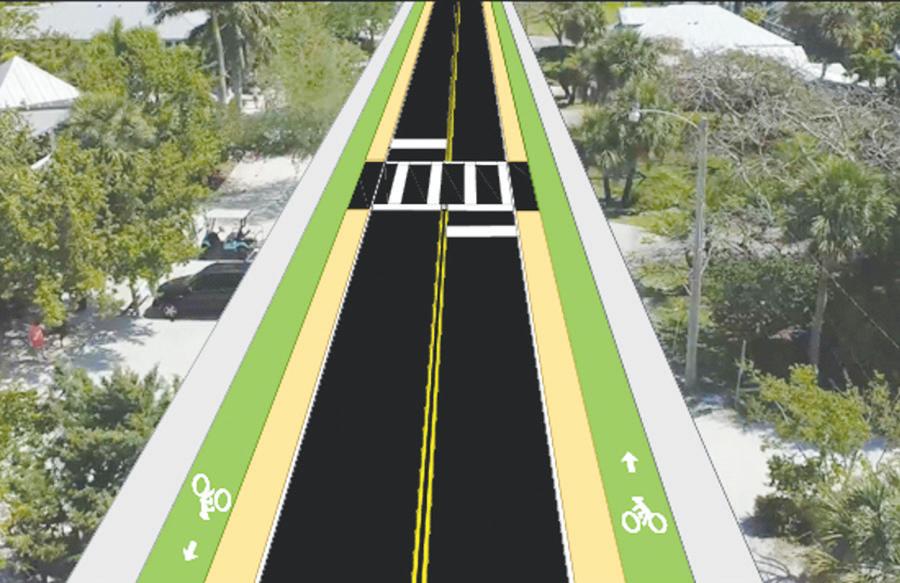CITY OF ANNA MARIA | SUBMITTED Left, Design Alternative 2 proposes a bike lane on each side of Pine Avenue. Design Alternative 3 proposes two bike lanes on the same side of Pine Avenue.