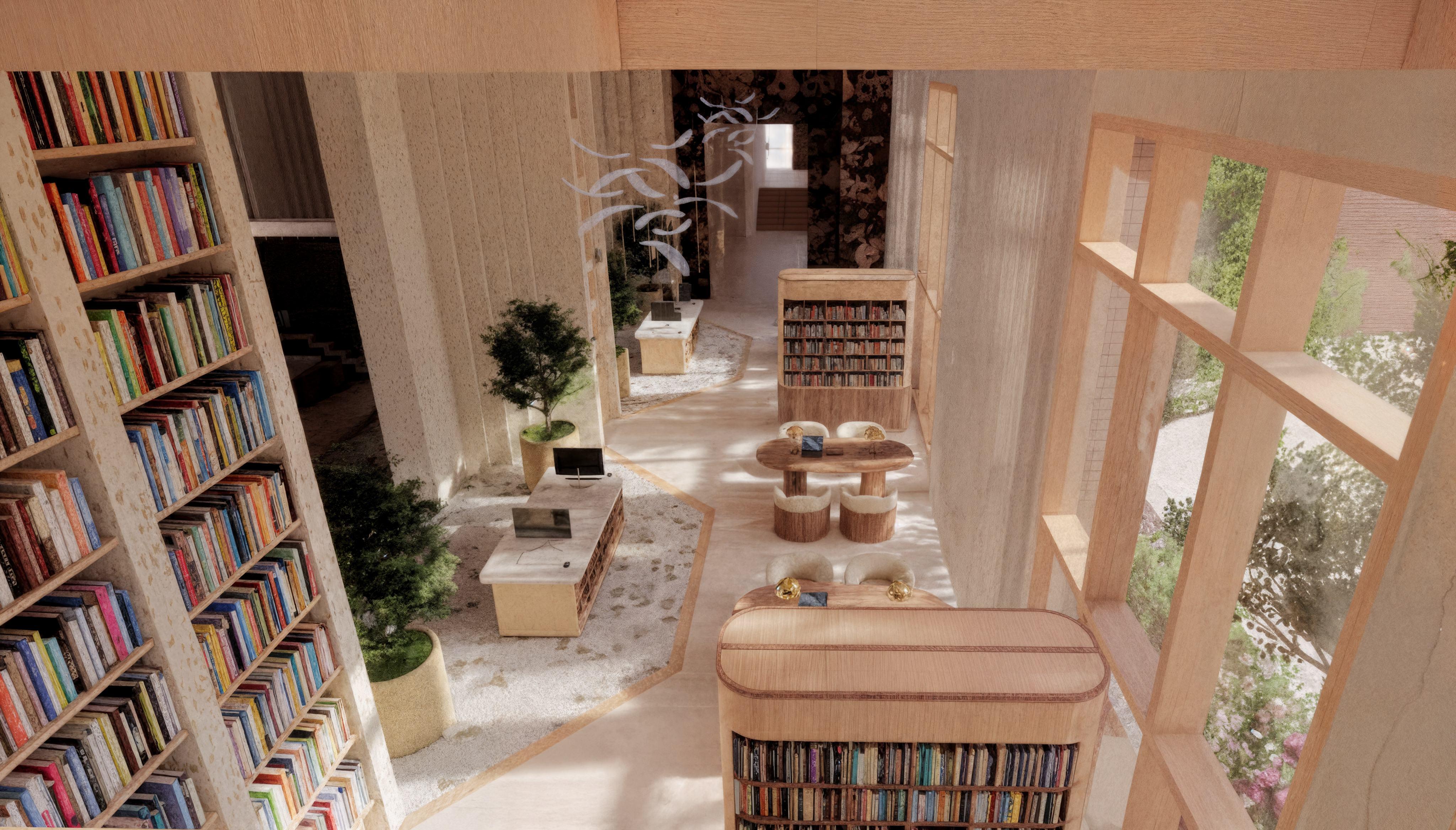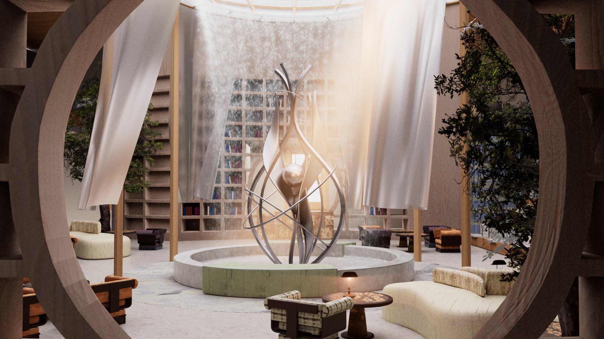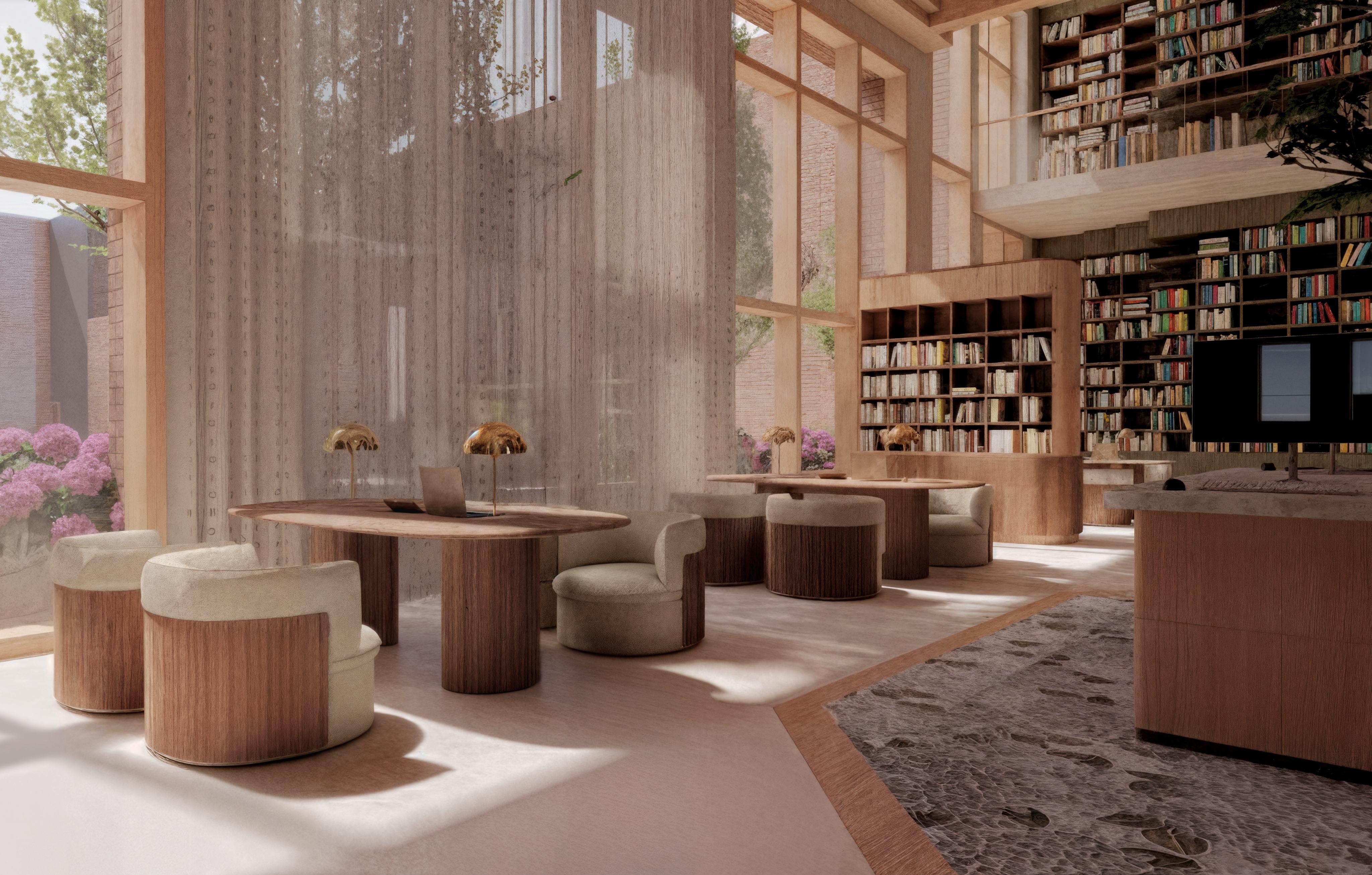 The central library is the starting point for all visitors, where shared interests spark natural interaction. It also celebrates personal identity, supporting both individual growth and quiet moments of connection.