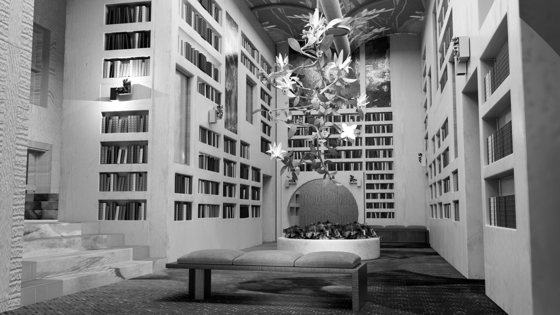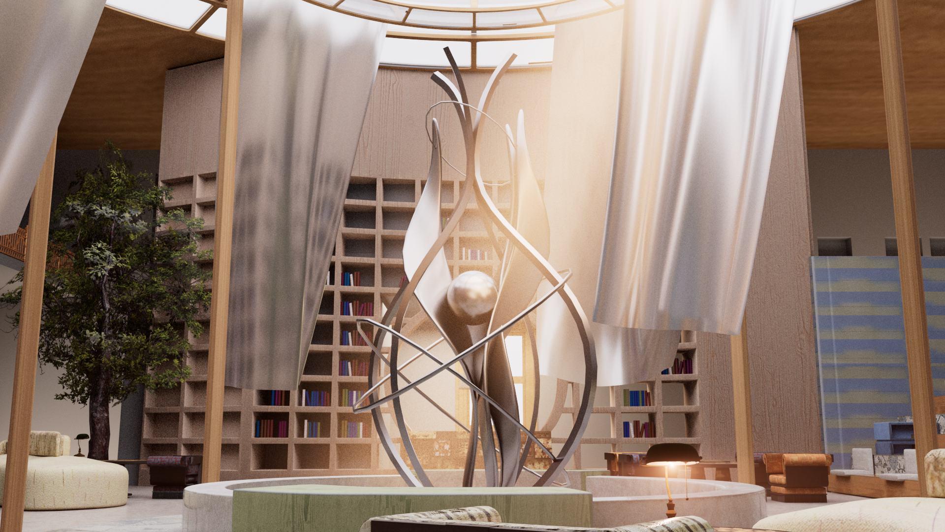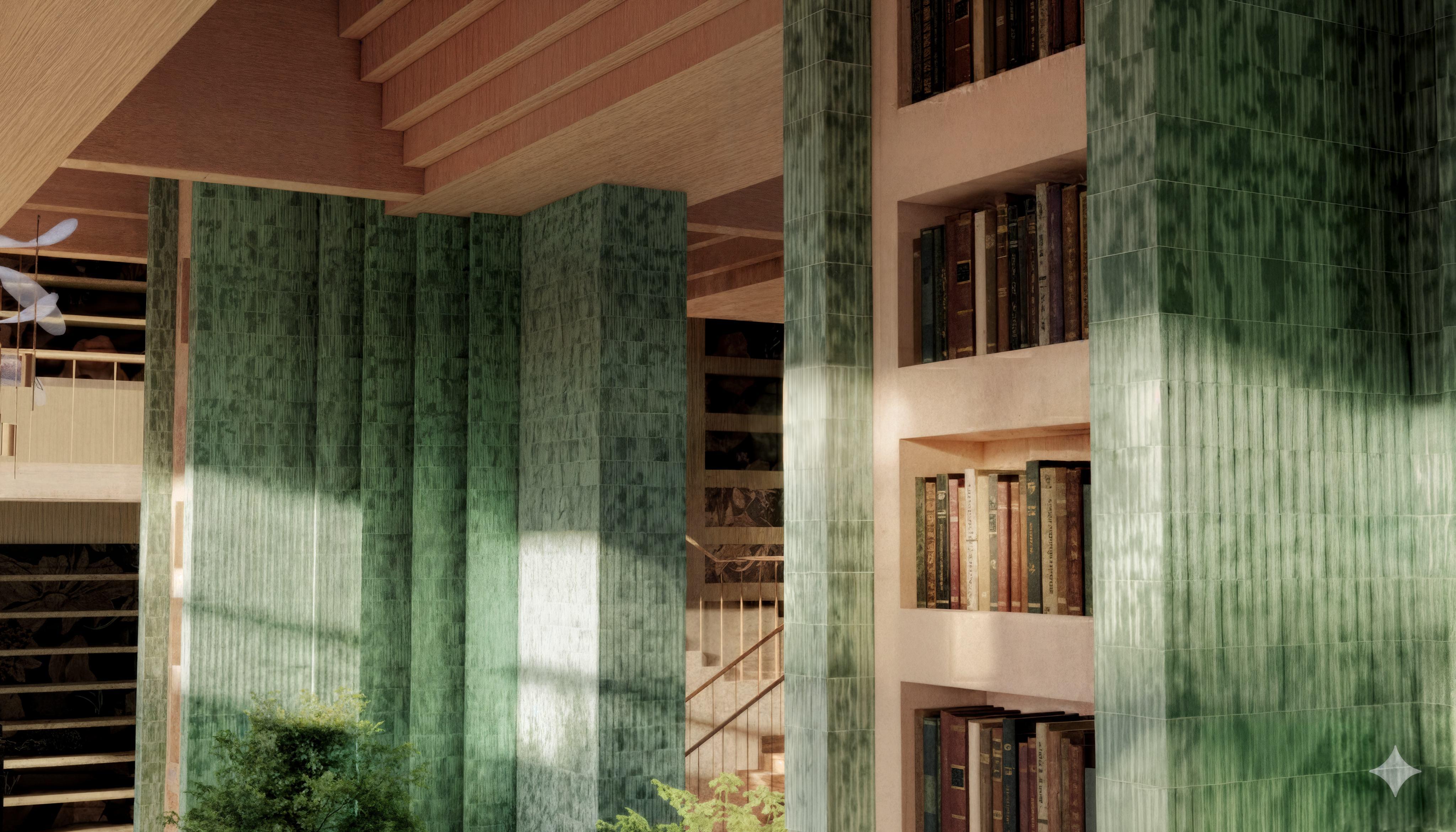The central library is the starting point for all visitors, where shared interests spark natural interaction. It also celebrates personal identity, supporting both individual growth and quiet moments of connection.
