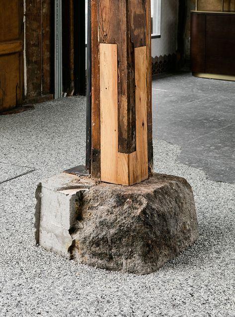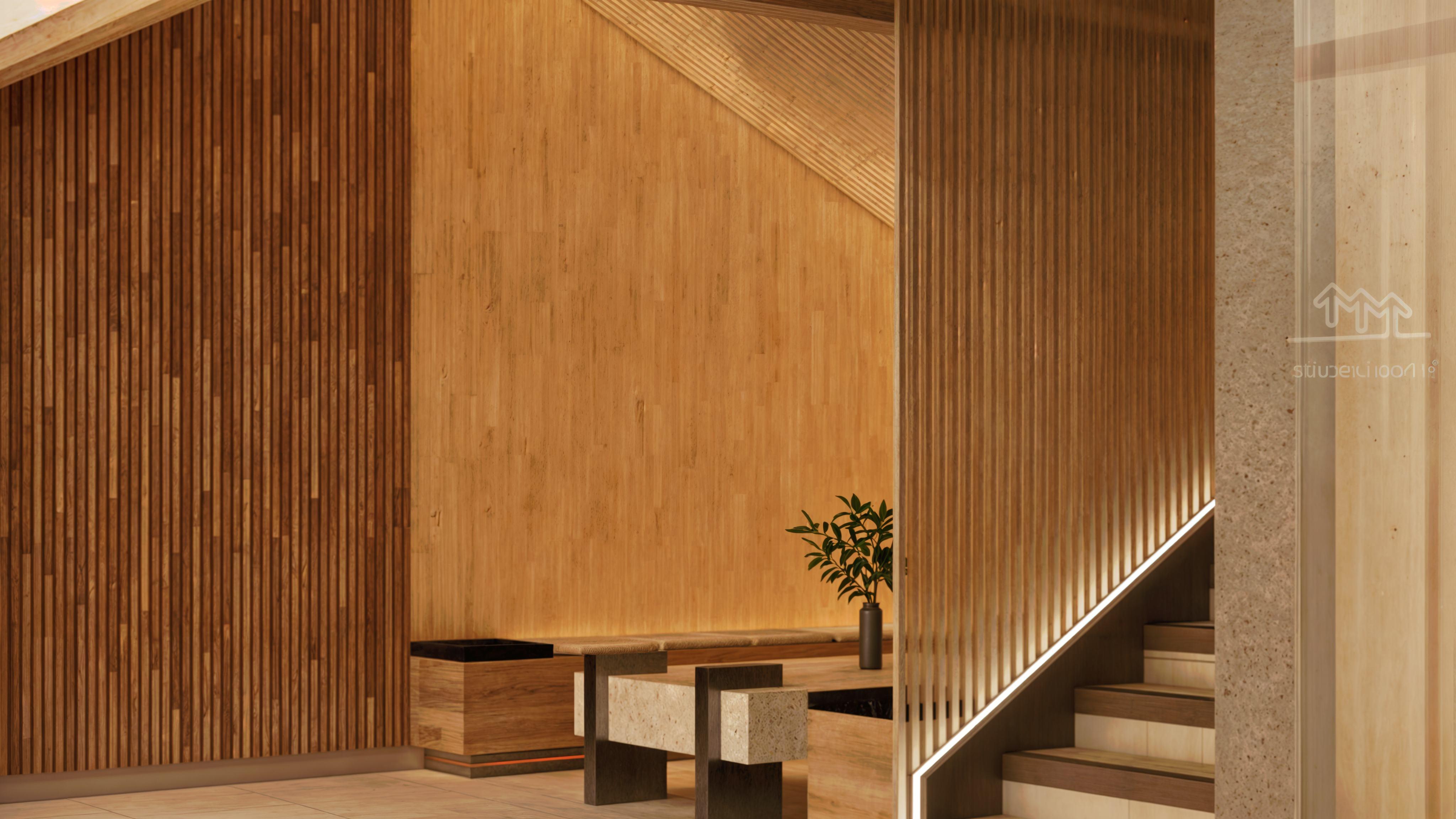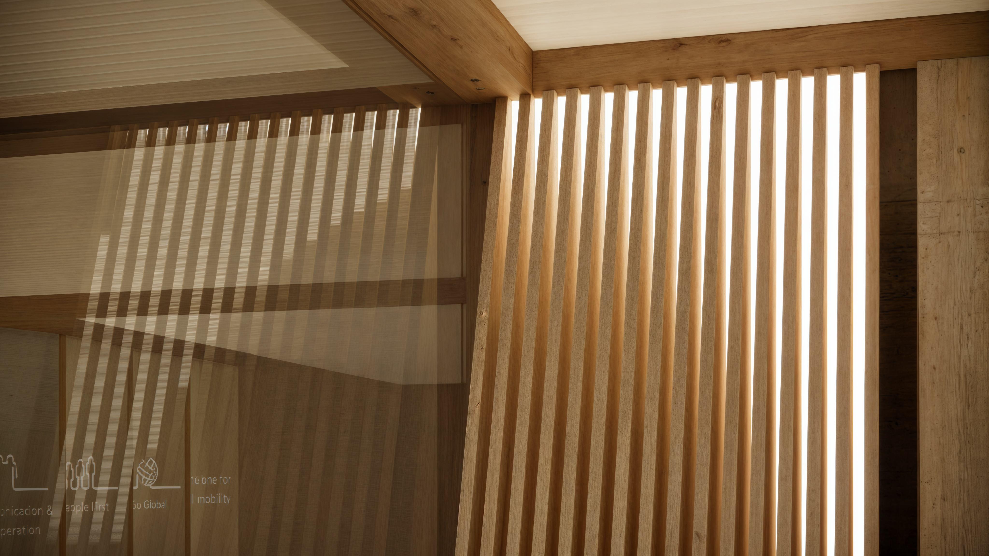 Reclaimed wood is used for the columns design to mimic the traditional material that usually see