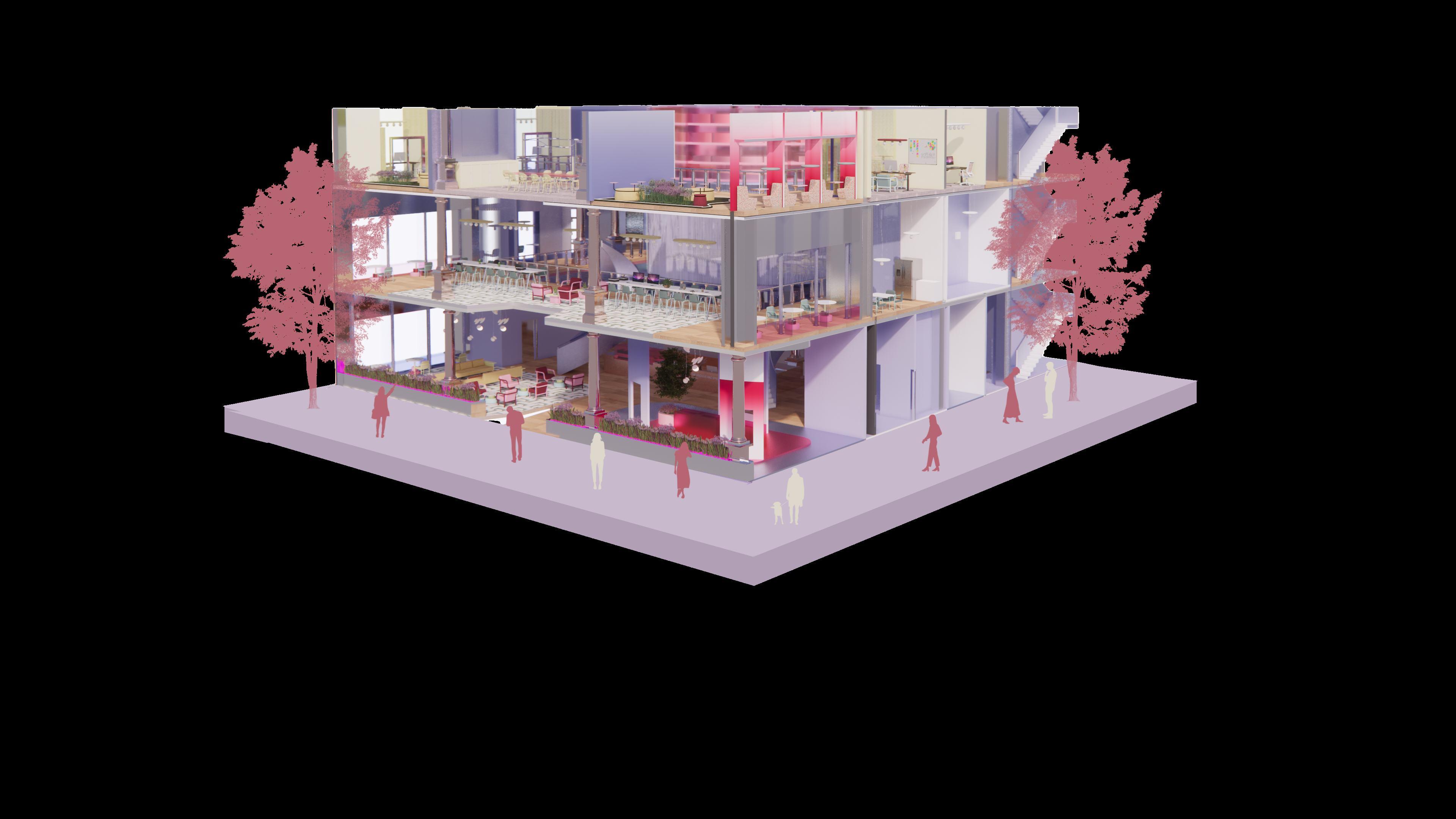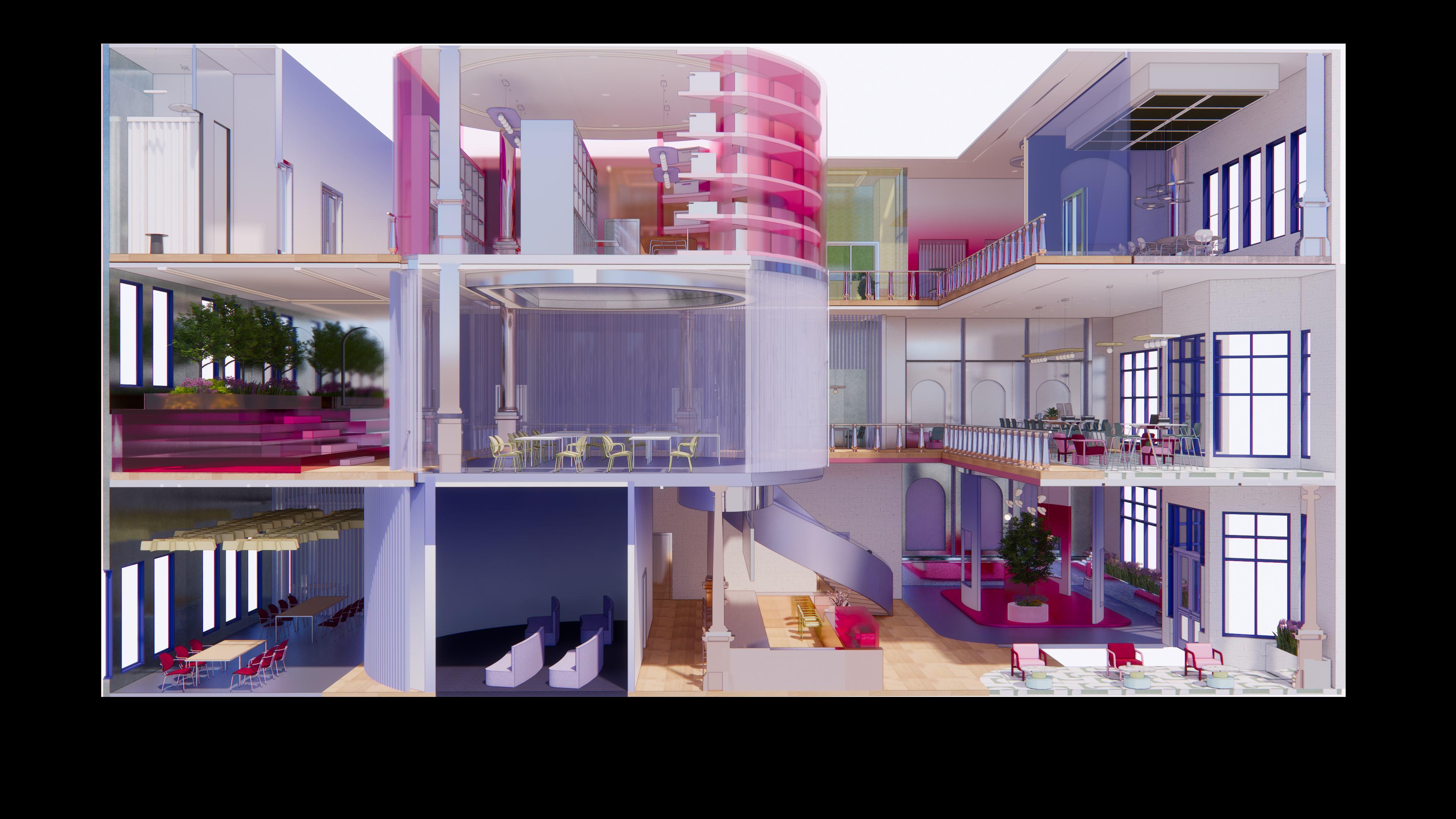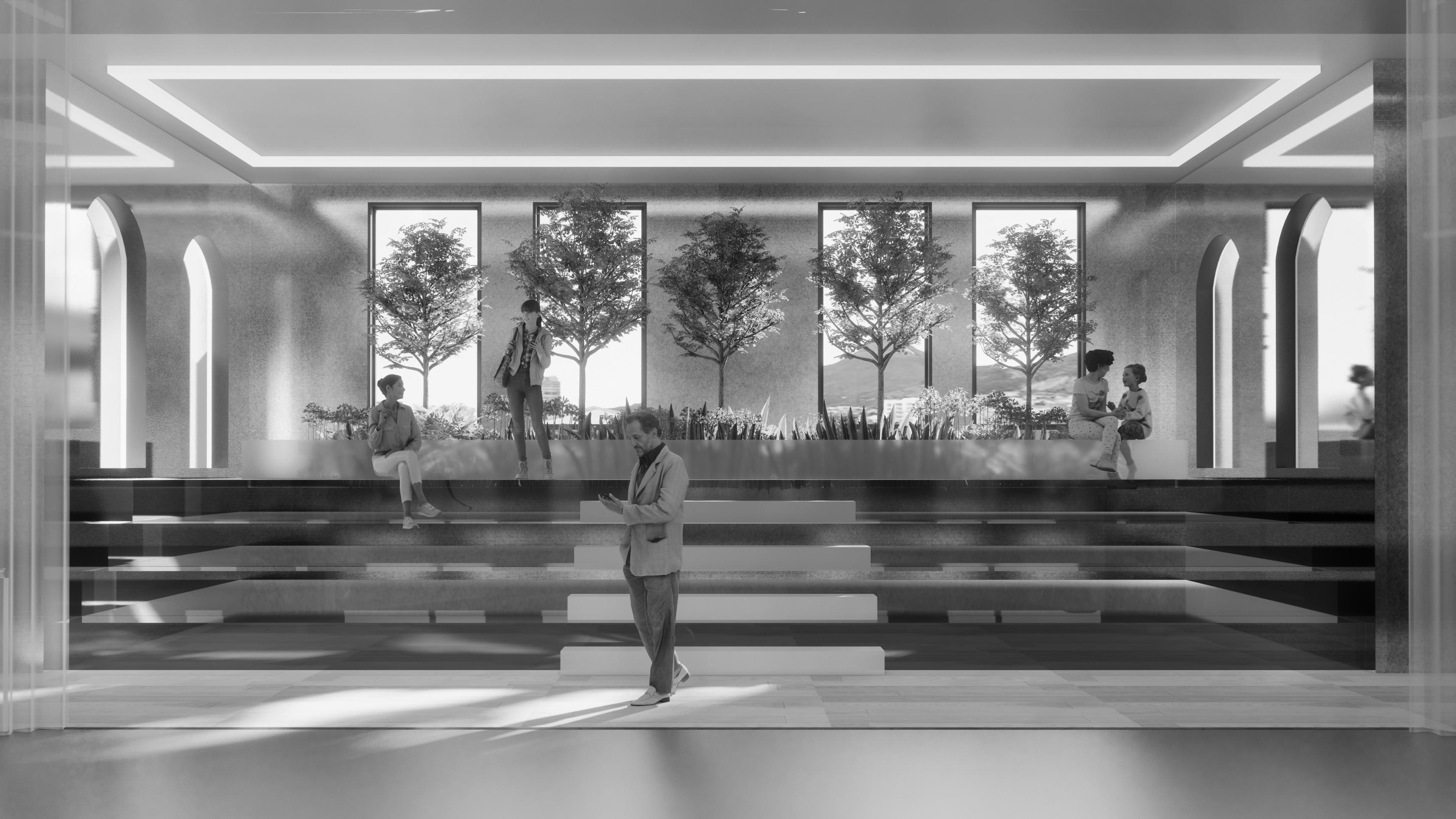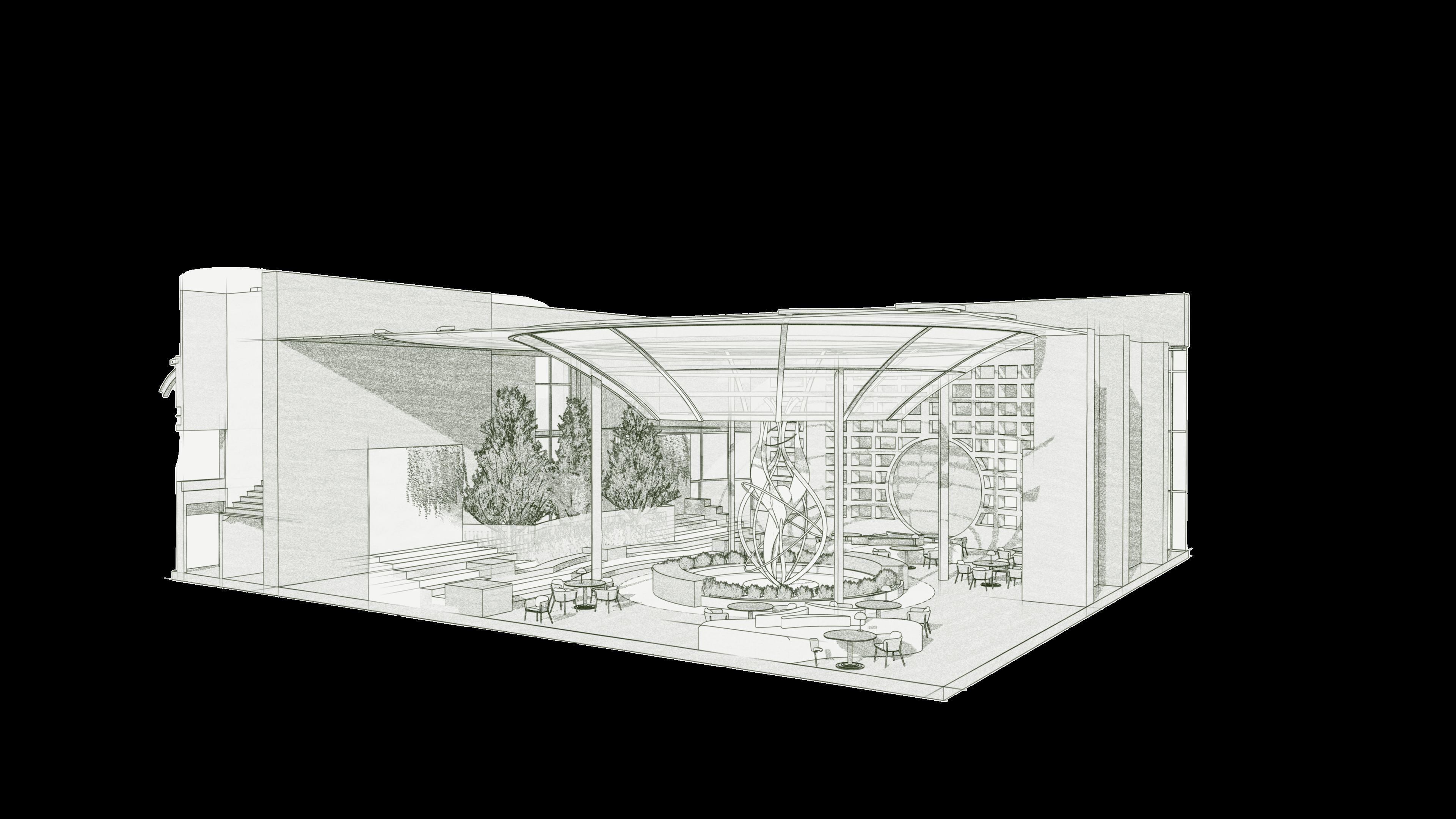 The building’s mass and volume present a unique opportunity to create a dynamic and engaging space that integrates nature and provides a welcoming environment.