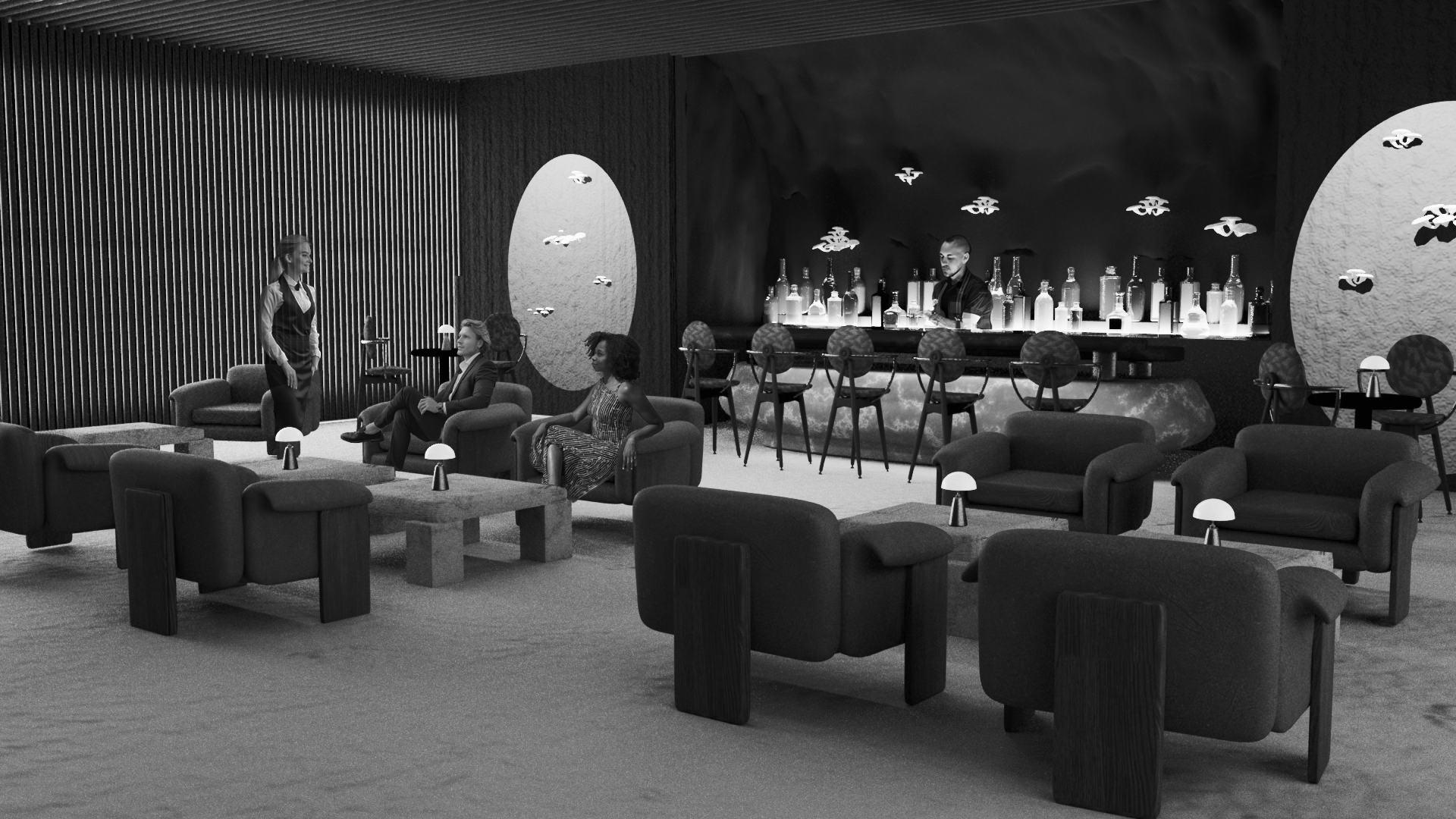 Create a cozy bar nook where guests can unwind before or after dining. The design concept effortlessly channels the timeless allure of fermentation, providing a laid-back retreat for casual relaxation and connection.
