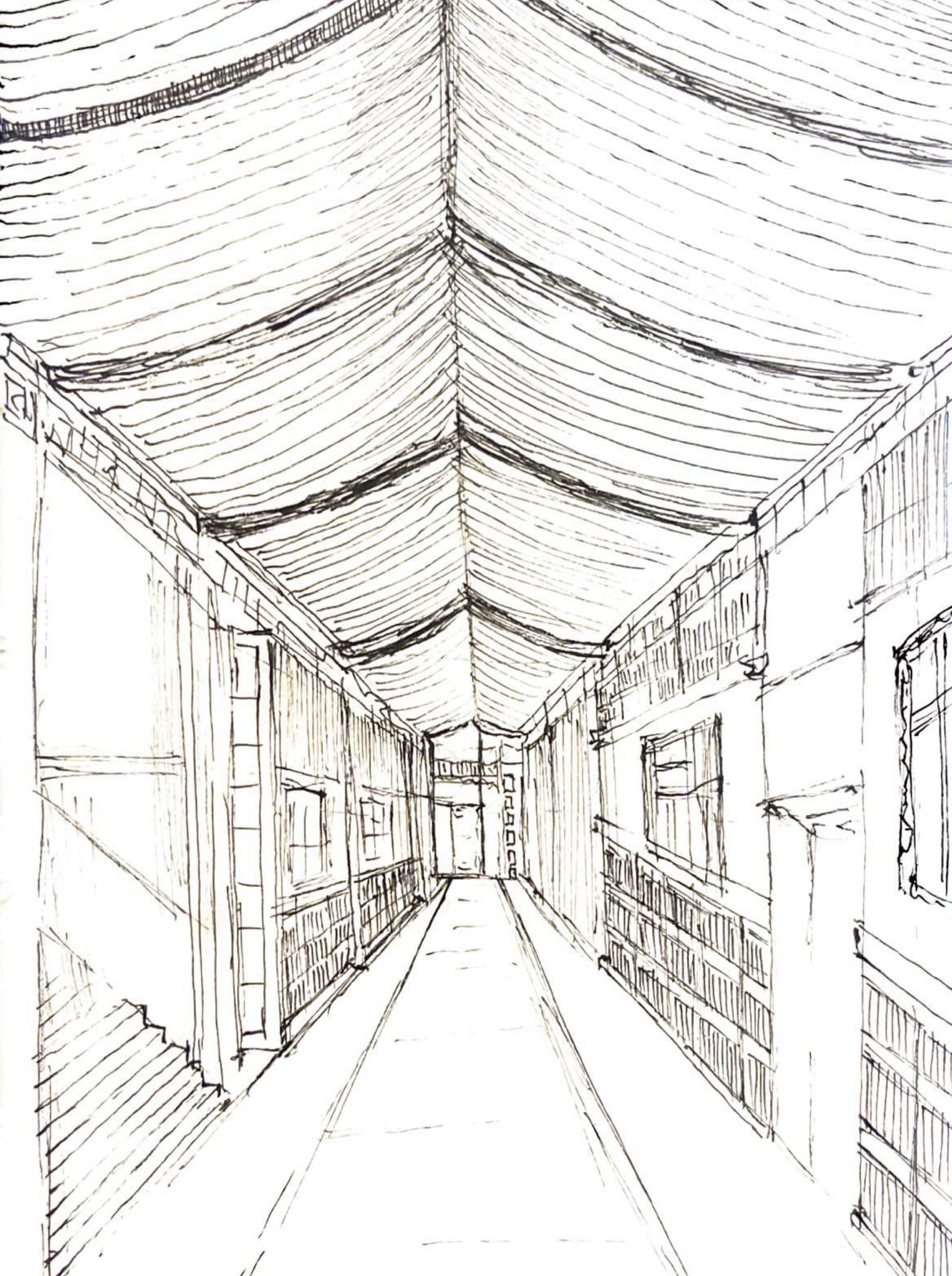 The central library is where each generation begins their exploration of the space, making it the first area where subtle engagement can occur, driven by shared interests in various books and artifacts.