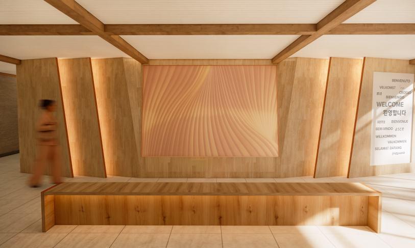 The lobby is the first place where people naturally meet and greet. It includes familiar elements that resonate with older generations, sparking curiosity and inviting younger visitors to engage.