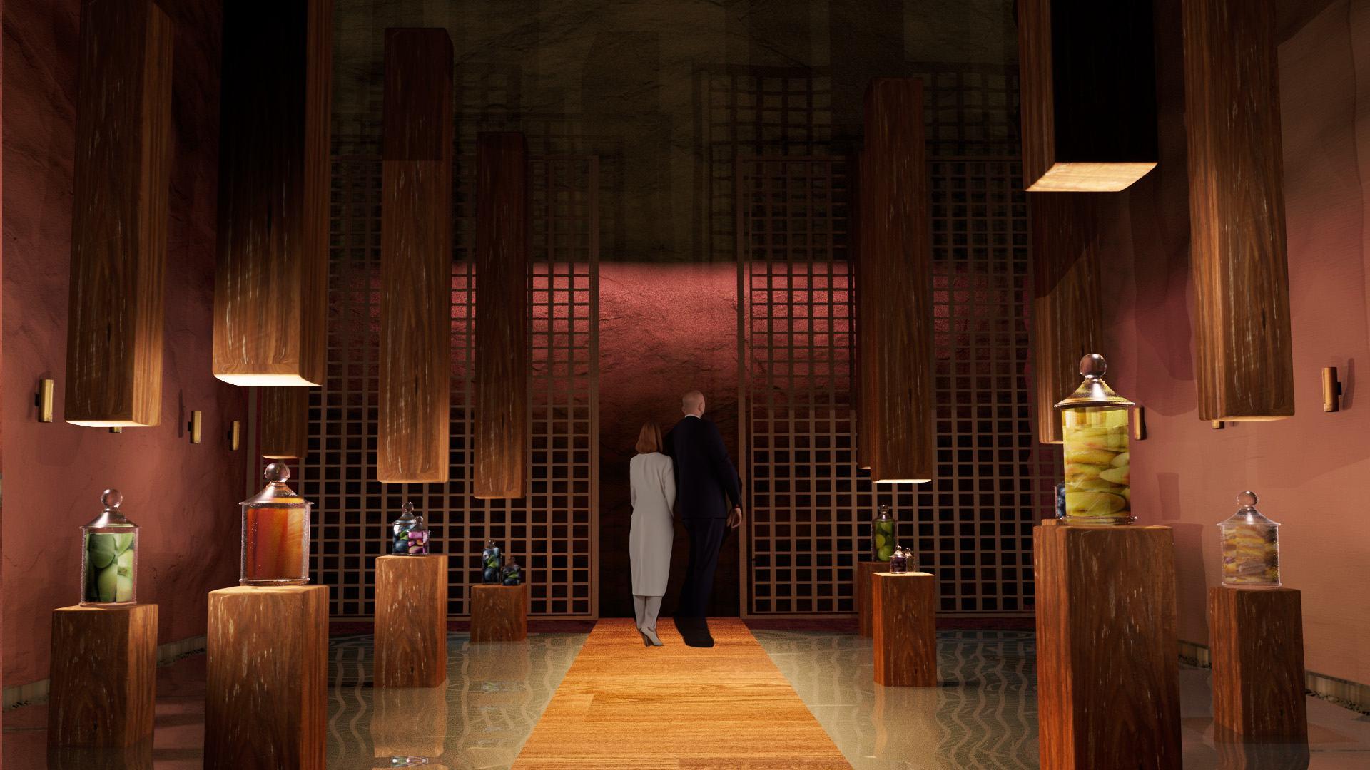 Stimulate customer curiosity to unravel the essence of the restaurant's concept. The gallery is meticulously designed to captivate customer interest through the art of fermentation, leaving them intrigued and eager to explore the unique concept behind the restaurant establishment.