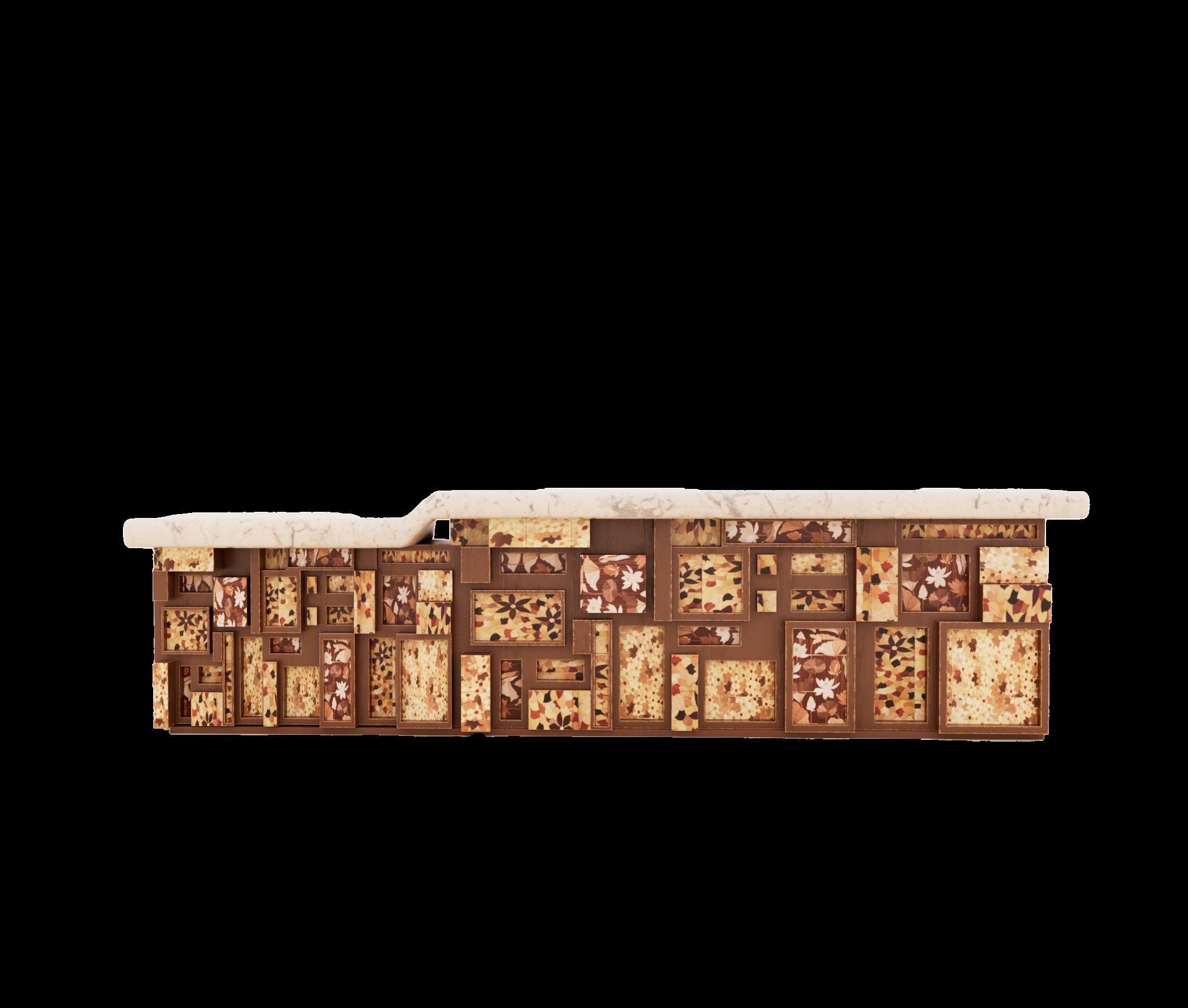 The custom reception desk inspired by the concept of stacked picture frames. This layered composition symbolizes diversity, with each frame representing different perspectives, coming together in a cohesive whole. 01 MAR 3TH, 2023