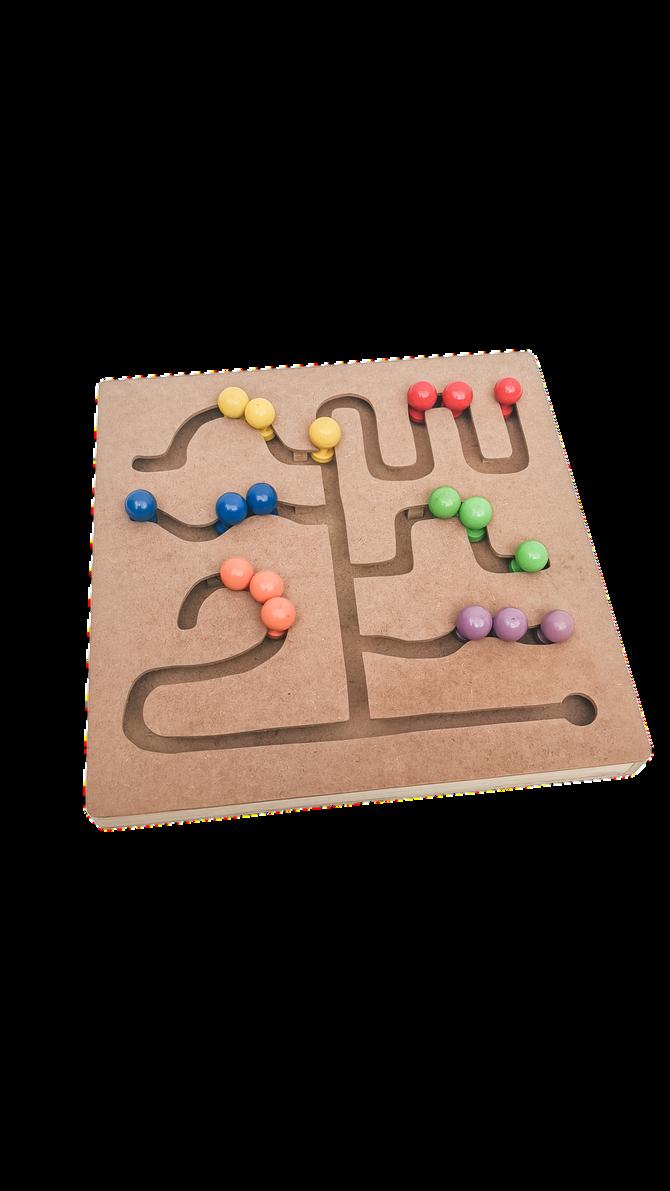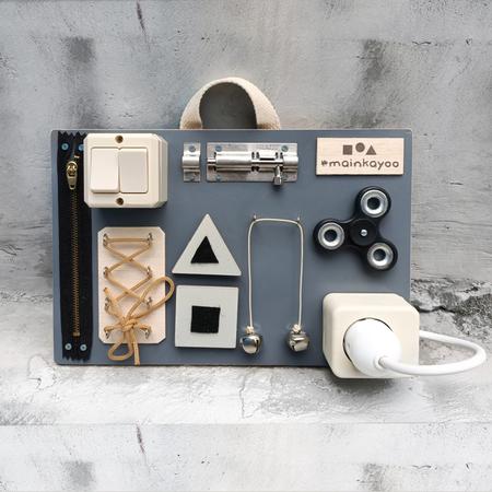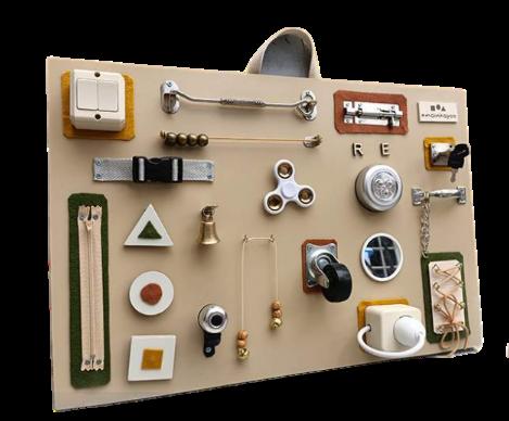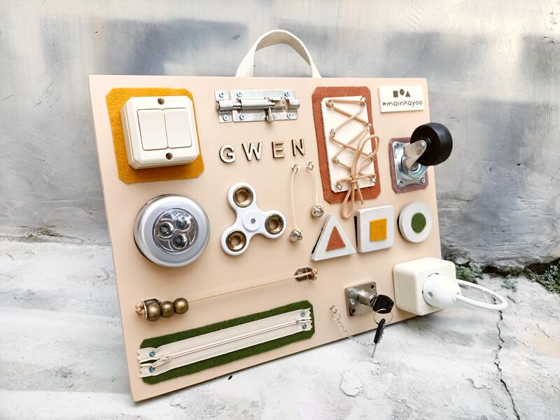 Papan main yang biasa disebut busy board ini adalah mainan berbahan dasar kayu yang diisi konten mainan dari kumpulan benda sehari sehari yang aman dimainkan dan biasa di eksplor anak. Stimulasi sensorik indra anak