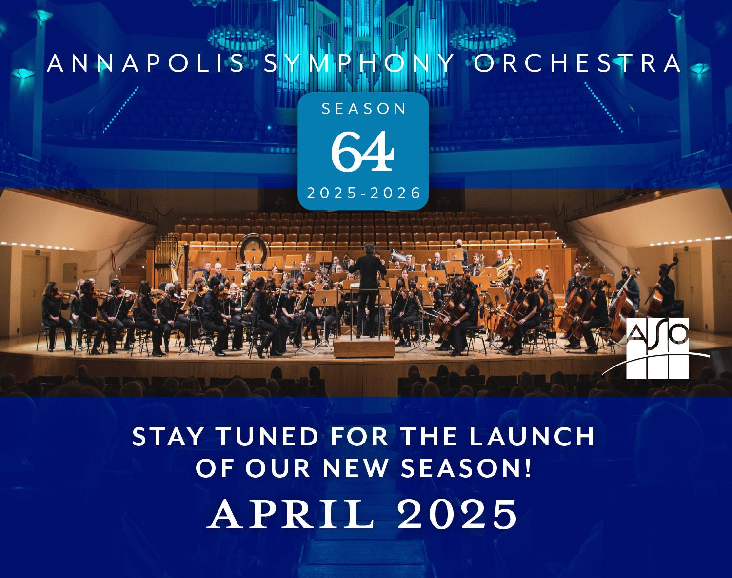 Academy Glee Club. Also remarkable are a 2012 return appearance at the Clarice Smith Performing Arts Center with mezzo-soprano Denyce Graves, national broadcasts on NPR’s Performance Today, debut TV broadcasts on Washington’s WETA Metro PBS, the launching of the ASO’s award-winning streaming platform Symphony+, the creation of the Annapolis Symphony Academy, and the ASO’s first commercial CD commemorating the 300th anniversary of the signing of the City of Annapolis’ Royal Charter. In July of 2022, Maestro