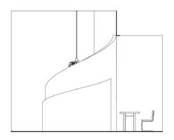 HASHI IS A LUMINAIRE DESIGNED FOR SUSHI OR ASIAN RESTAURANTS AND CAN BE INSTALLED IN INTERIOR OR EXTERIOR SPACES. THE CONCEPT FOR THIS LUMINAIRE COMES FROM A PAIR OF CHOPSTICKS HOLDING A SUSHI ROLL. THE ILLUMINATE GLOBE PROVIDES DEFUSED LIGHTING ABOVE DINING TABLES. THE WORD “HASHI“ MEANS “CHOPSTICKS” IN JAPANESE. THE LUMINAIRE IS CONSTRUCTED FROM RECYCLED PINE WOOD AND SUSTAINABLE PLANT POLYMER. THE LIGHT IS ILLUMINATED BY AN LED BULB THAT IS HOUSED WITHIN THE GLOBE AND CONNECTS TO THE CEILING OR BEAM THROUGH A TRACK MOUNTING SYSTEM. ELEVATION