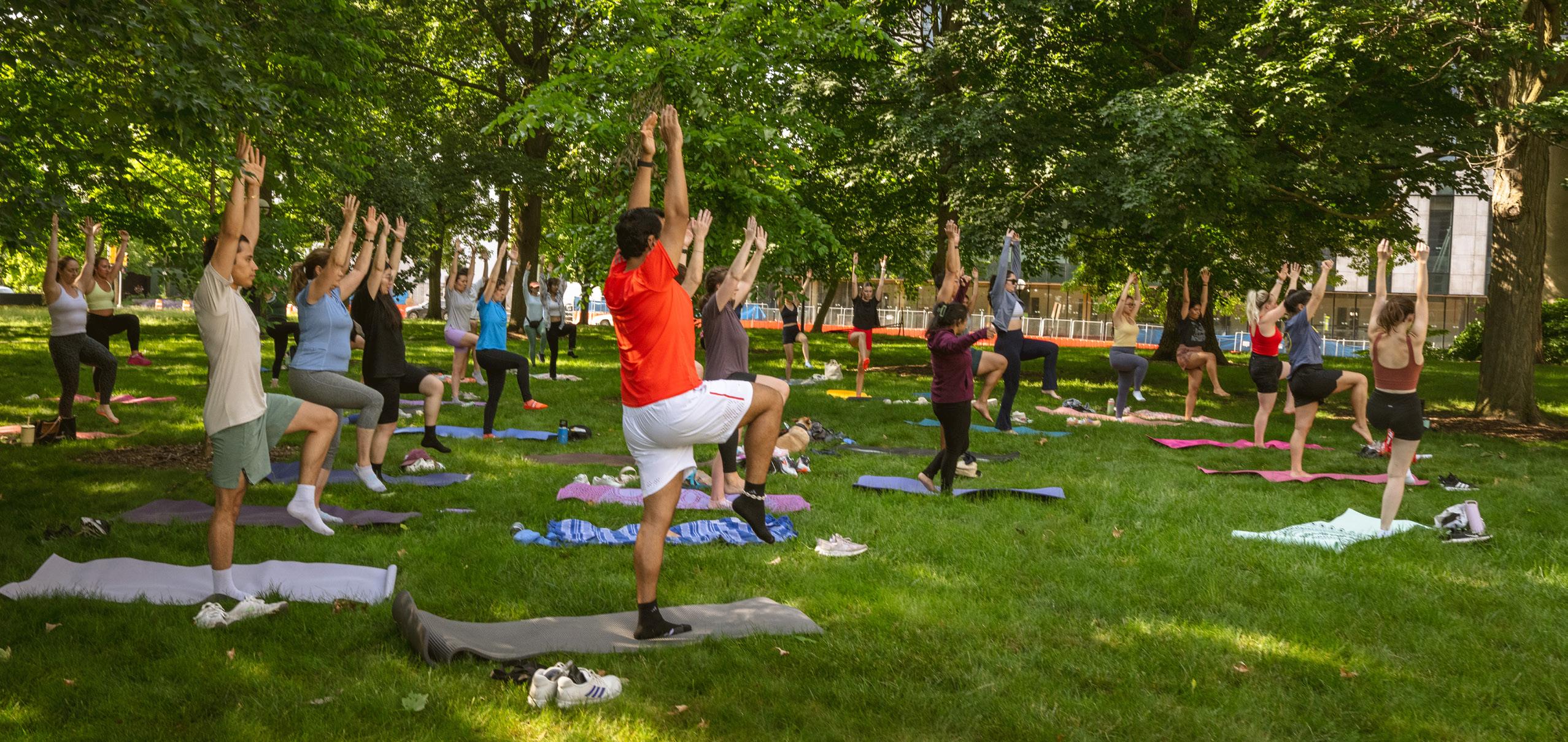 Attendees of the Retreat series enjoyed classes ranging from cross-fit to yoga to swing dance lessons on the lawn of the Power Center for the Performing Arts.