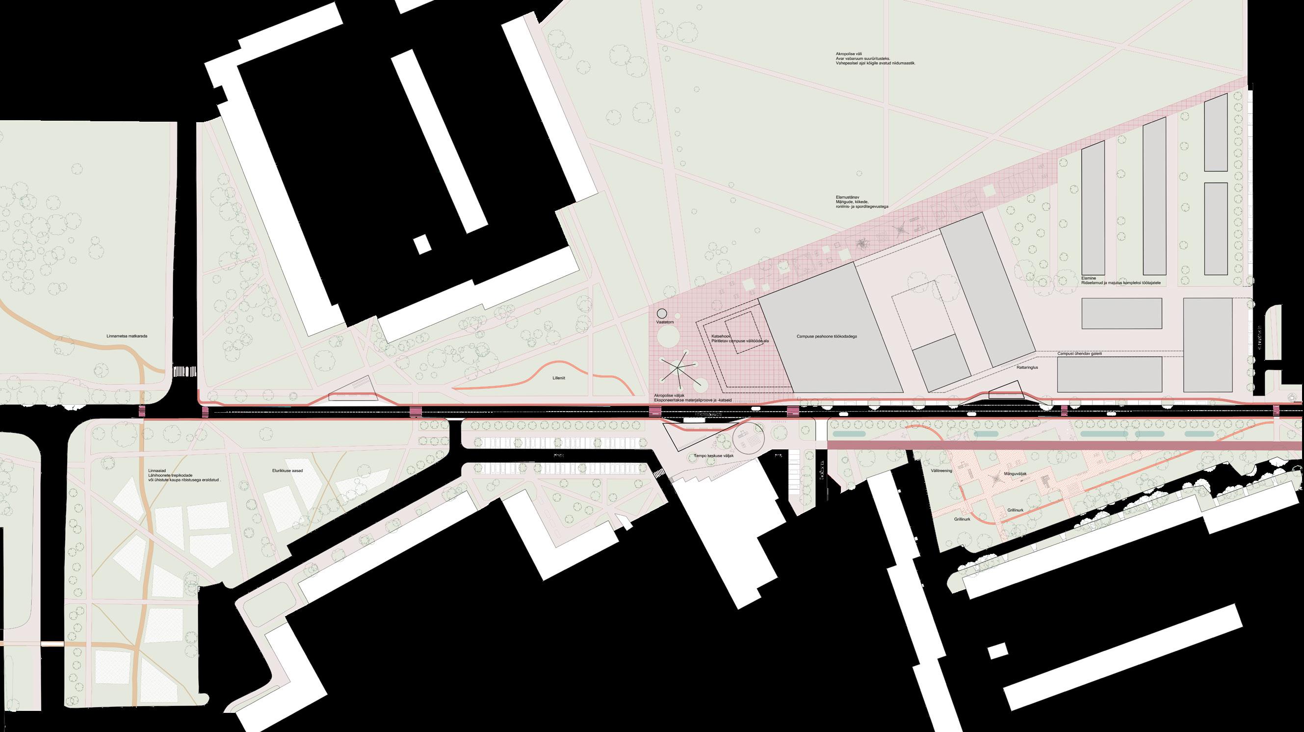 The purpose of the project is to transform Tallinna maantee from a divider into a connector. Our solution considers Tallinna maantee as a street that links various city identities and spatial qualities. The street itself consists of numerous alternative paths, supporting different moods and modes of movement, enriching the otherwise monotonous linearity of Tallinna maantee. Street segments with different characters and abundant pauses interweave the existing architecture and green zones with a new urban solutions, creating a strong sense of place.