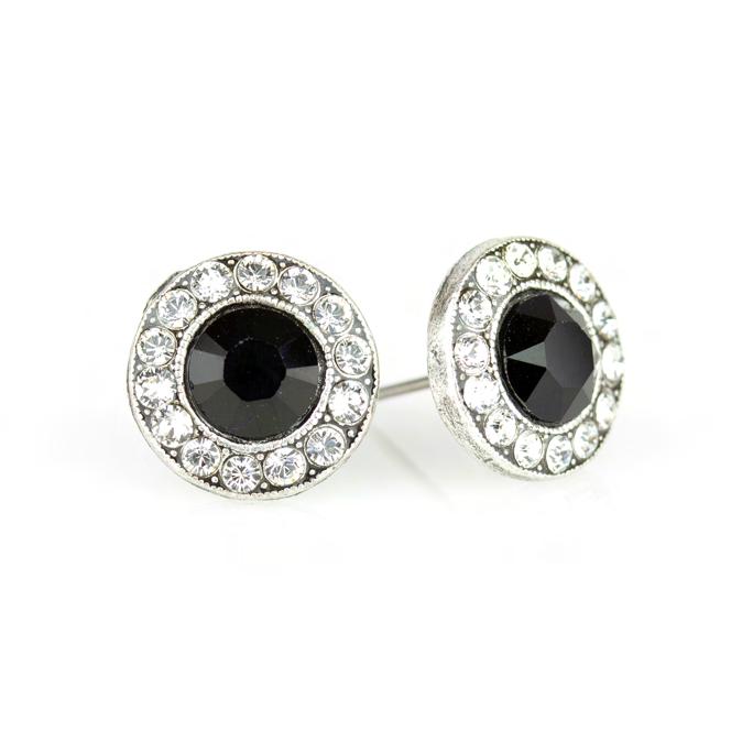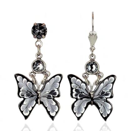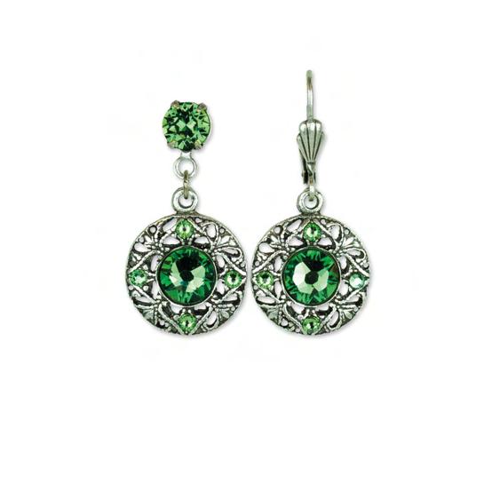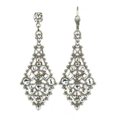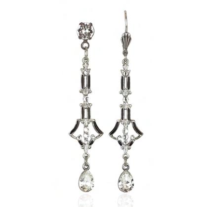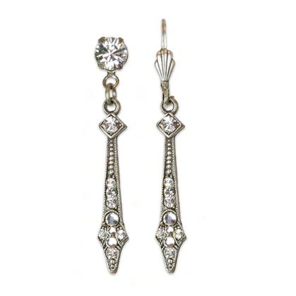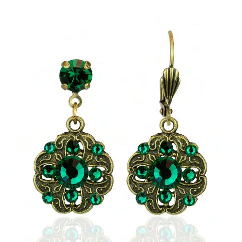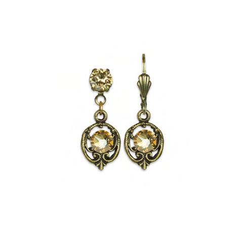 Earring wires are antiqued solid brass or silver plated brass. Posts are surgical steel. Most earrings have both a standard wire (lever back) and an option for a post or clip-on, both of which are made with brilliant crystals. There is an additional $7.00 charge to convert to post or clip-on. Please specify leverback, post or clip when placing your order as well as your earring card choice: lip, no-lip or neither.