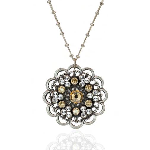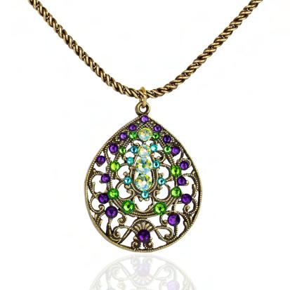 We pride ourselves on handcrafting our jewelry with time-tested techniques that no foreign assembly line or machine can match. Our work endures because we use only the fnest materials; brilliant crystals, freshwater pearls, hand mixed and hand applied enamels, antique glass beads, reproduction glass stones, Mother of Pearl, etc. Chains and clasps are solid brass. Most importantly, all fndings are lead/nickel/cadmium-free.