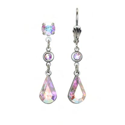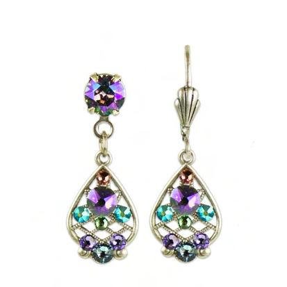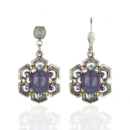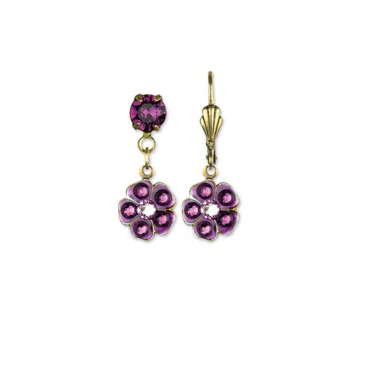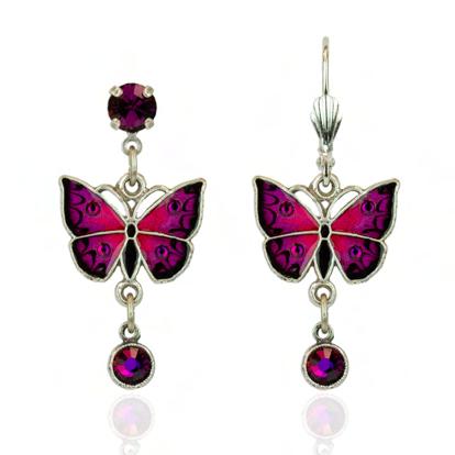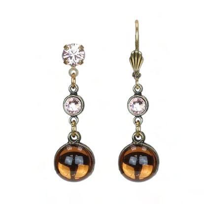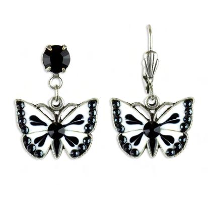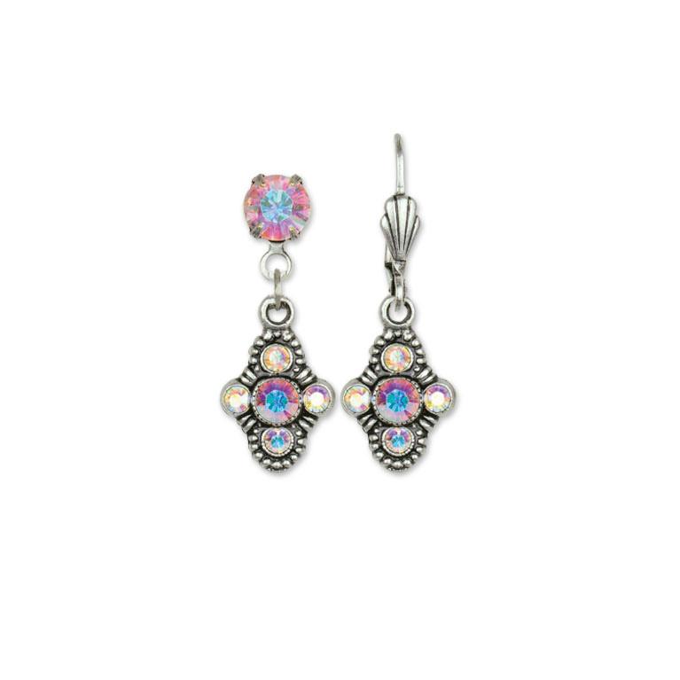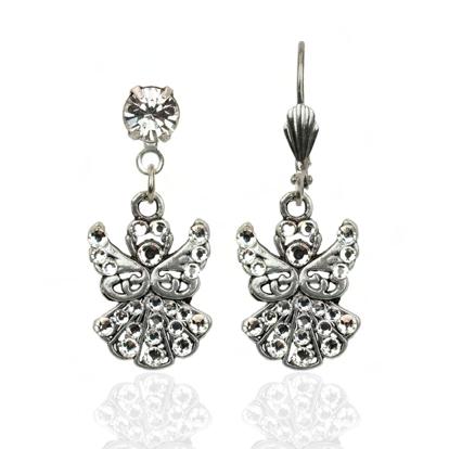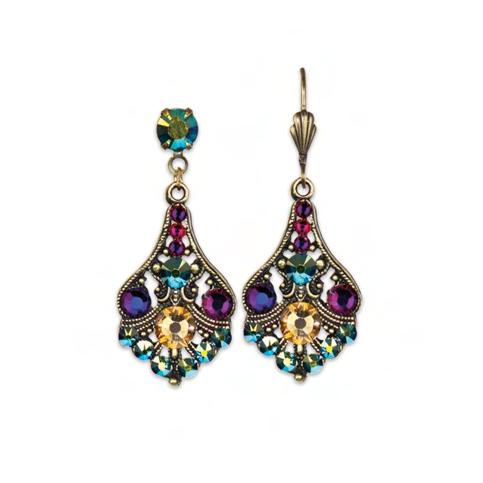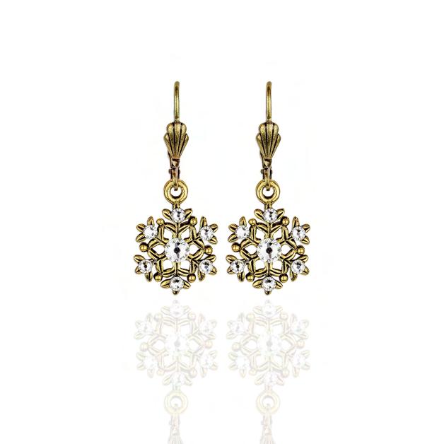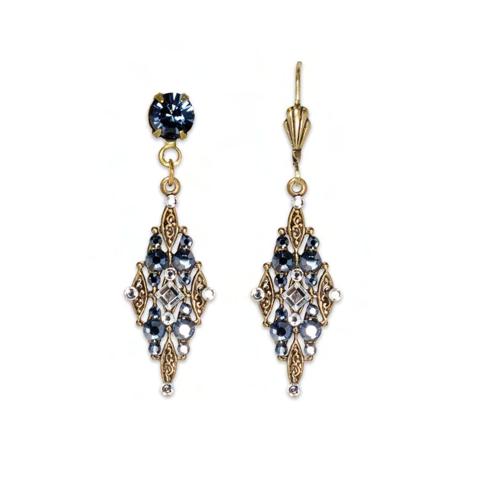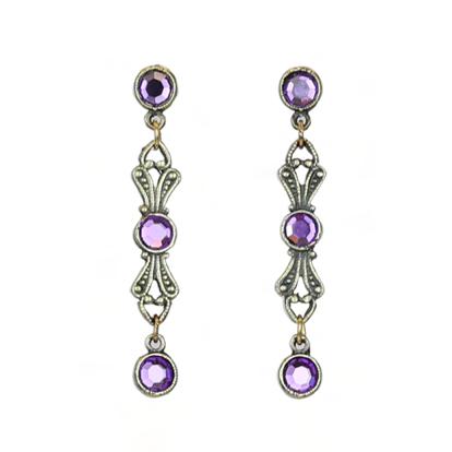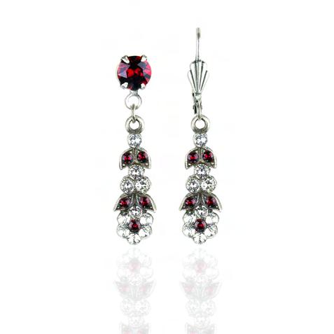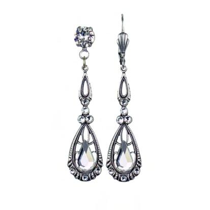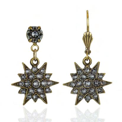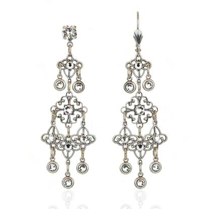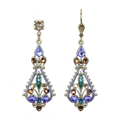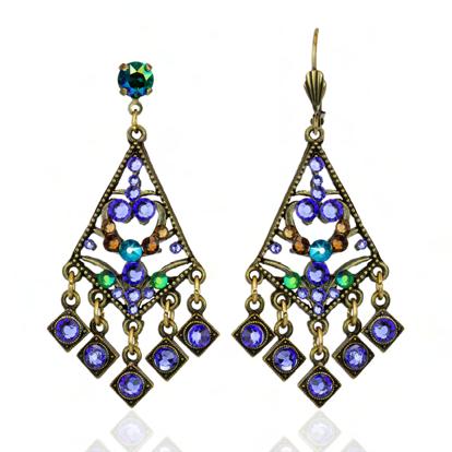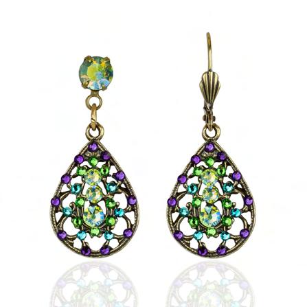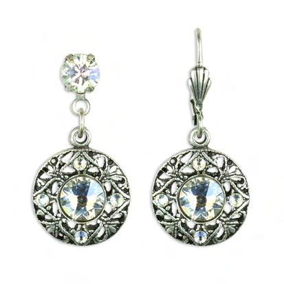 Earring wires are antiqued solid brass or silver plated brass. Posts are surgical steel. Most earrings have both a standard wire (lever back) and an option for a post or clip-on, both of which are made with brilliant crystals. There is an additional $7.00 charge to convert to post or clip-on. Please specify leverback, post or clip when placing your order as well as your earring card choice: lip, no-lip or neither.